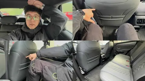 像我身高1米83,我把前排调到舒服的位置以后,我的后排腿部空间仍然足够宽阔,我甚至还能用手比个“6”出来,而且头部空间也不小,贴近座椅靠背去坐,也能离车顶有一掌的距离,更不用说这车的后排地台几乎纯平,且车宽做到了接近1米9,哪怕是我这个体型,后排坐满3个也不会觉得拥挤。