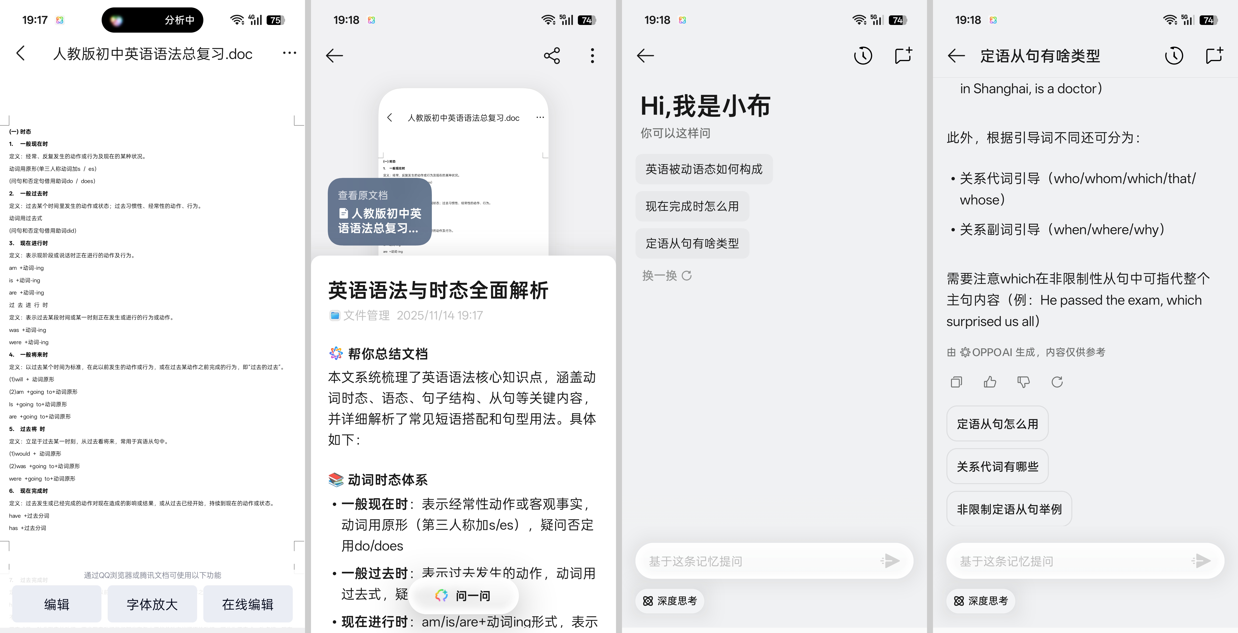 而后系统会自动提取核心信息并生成摘要,让我们快速把握内容精髓,告别传统的信息回溯方式;最后再配合集成DeepSeek模型的小布助手联动,实现深度交互问答。