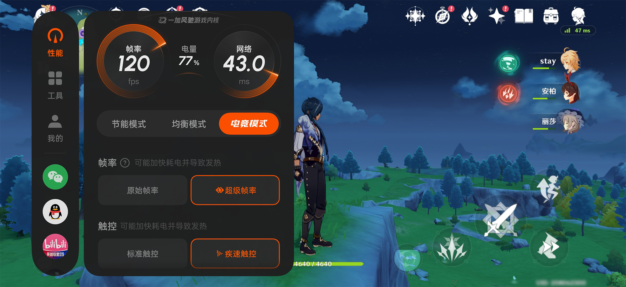 挑战《原神》时,开启“电竞模式”与“超级帧率”,即使画质全开也能稳定120帧畅玩,画面细节与操作响应均表现均衡。