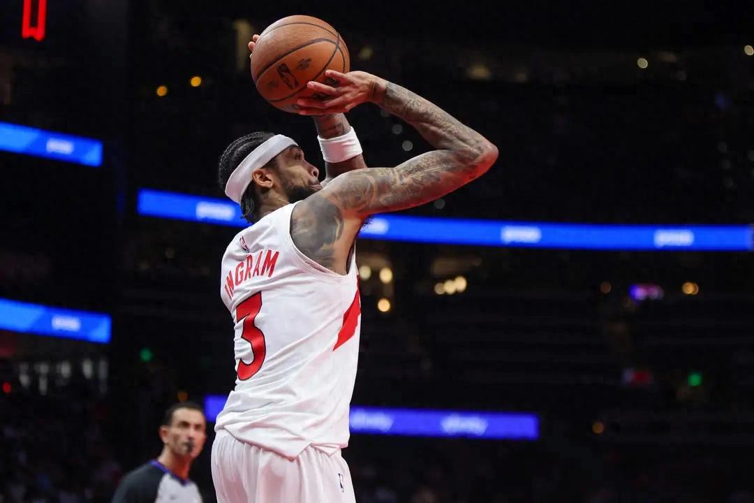新赛季至今,英格拉姆连续出战18场,未缺席一场,场均出战33.4分钟,拿到21.6分5.8篮板3.9助攻1.1抢断,投篮命中率48.6%,三分命中率31.7%!