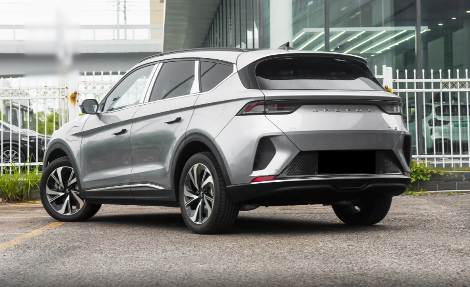 车身侧面就是一款常规家用SUV,车顶整体呈下滑态势,笔直腰线贯穿车身,自然延伸至车尾后形成环抱式视觉效果,隐藏式门把手与车身融为一体,除此之外就没什么需要强调的部分了。贯穿尾灯融入熏黑设计,配合三段式下包围结构进一步强化车尾运动气息,单从外观设计来看,大家就能猜到阿尔法T6比较擅长驾控。