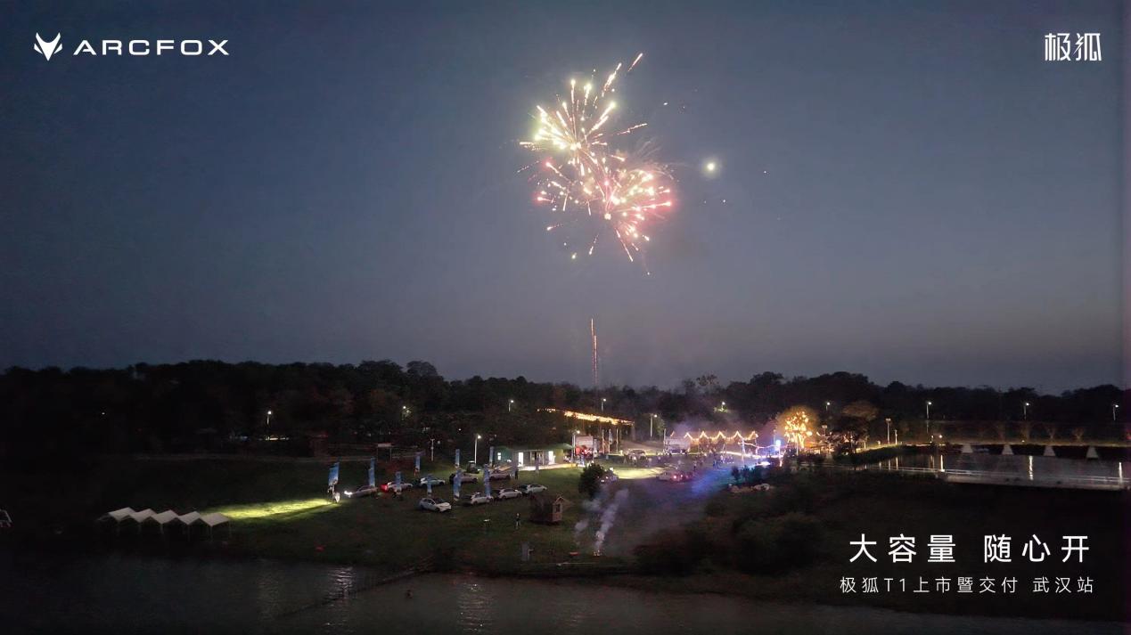 9月27日下午,极狐T1武汉地区交付仪式在梁子湖景区向云端湖畔营地正式启动。现场气氛热烈,用户们纷纷与爱车合影留念。交付仪式结束后,大家在营地举办起音乐烧烤,乐队奏响欢快乐曲,耀眼的烟火将气氛推向顶点。