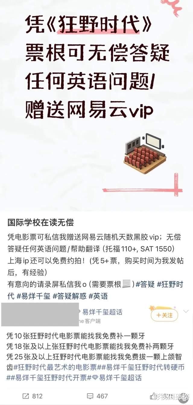 正是存在这样的对比,才更加凸显出易烊千玺的市场号召力有多强。羡慕顶流的粉丝不是没道理,他们自发组织包场,还搞出了很多创意应援活动。网上晒出来粉丝群里有人提供补牙服务换电影票,有人教游泳换票,甚至还有美甲、P图等各种服务,只要出示《狂野时代》的电影票就能兑换。这种热情在其他演员的粉丝中确实很少见到。