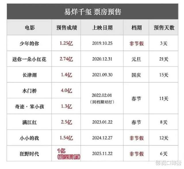 易烊千玺的票房号召力确实让人惊叹,正儿八经看,从2019年第一部正式主演的电影《少年的你》开始,他电影预售成绩就一路飘红。