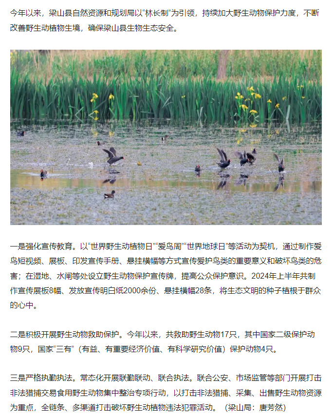 梁山县自然资源和规划局加强野生动物保护守护生态和谐家园