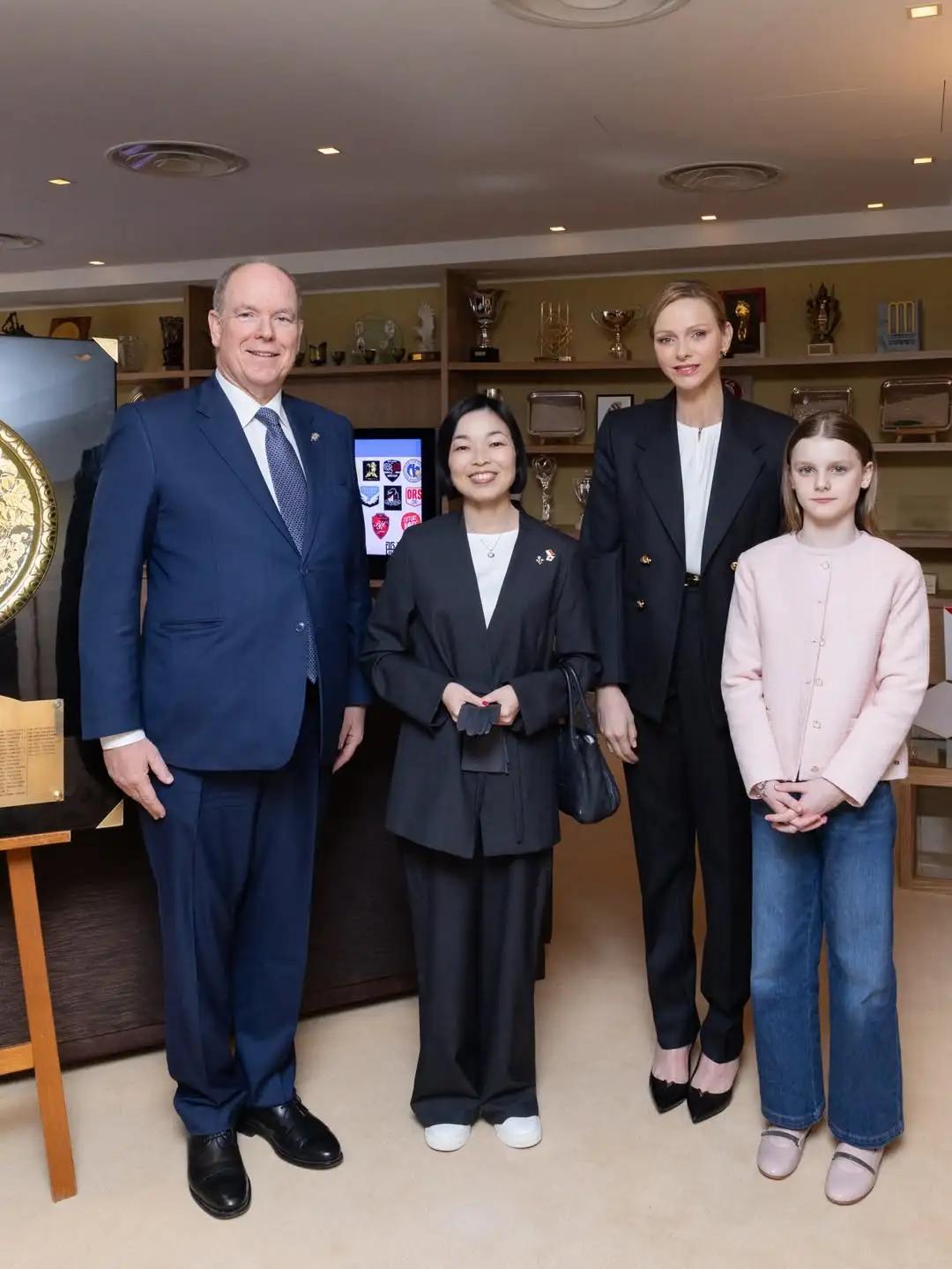 3.20 摩纳哥亲王阿尔贝二世、王妃夏琳和加布里拉公主观看慈善橄榄球赛,今年首次有日本队伍参加,因此同场还有刚好溜达到欧洲的三笠宫彬子女王,她是霓虹橄榄球协会主/席