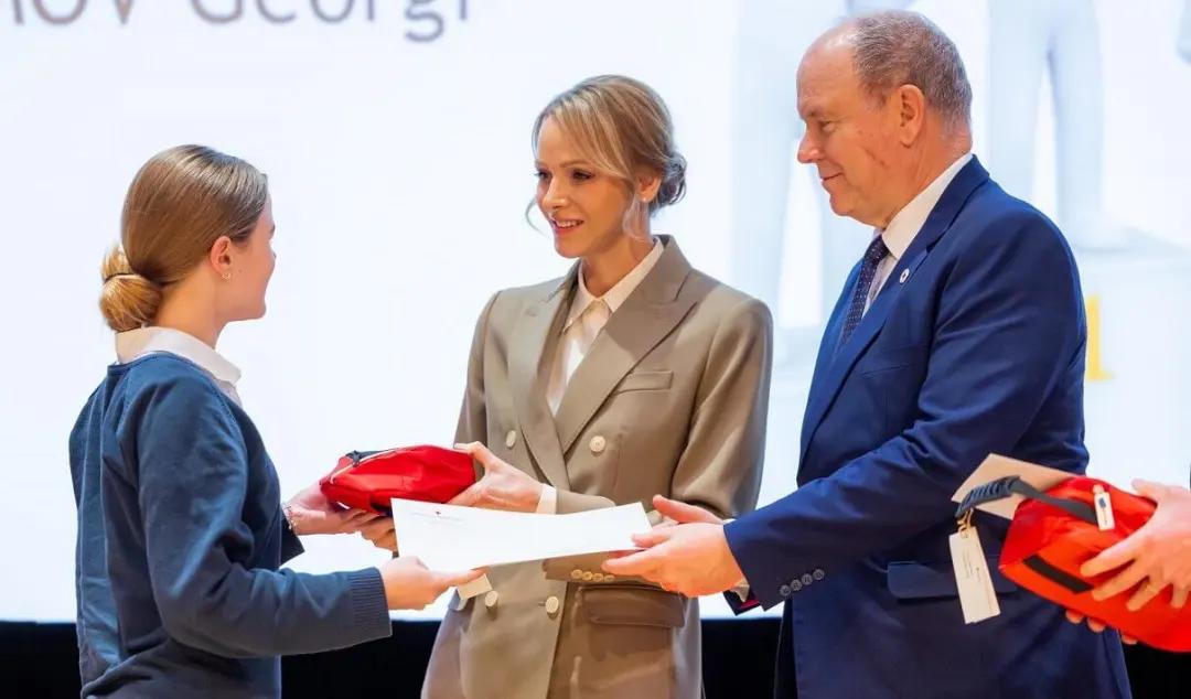 3.17 摩纳哥亲王阿尔贝二世和王妃夏琳出席红十字会的颁奖礼