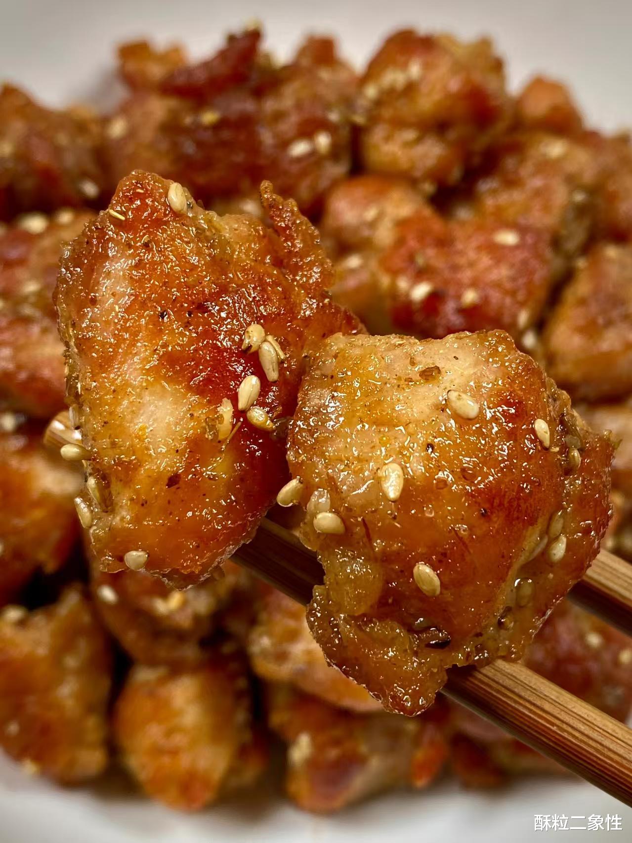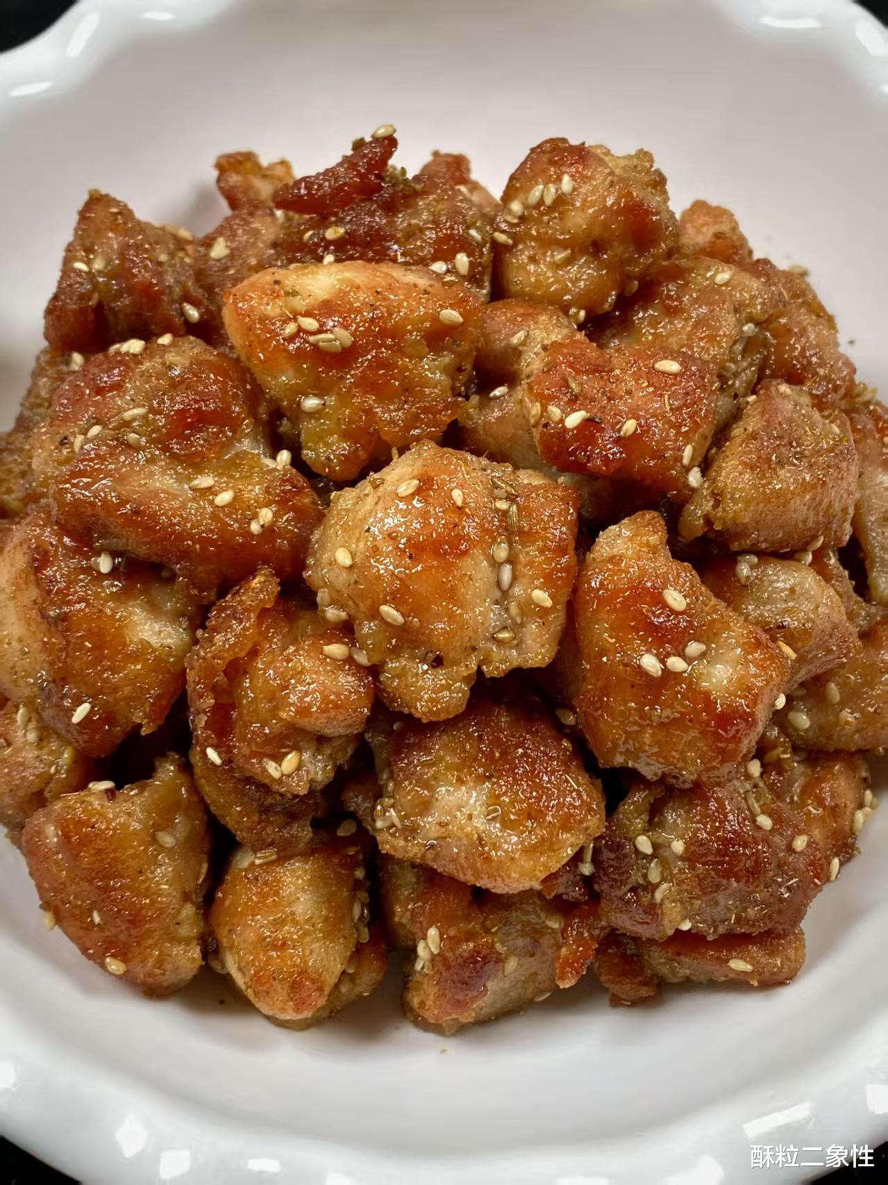 锅里不倒油!不倒油!不倒油!重要的事喊三遍。把腌好的鸡腿肉皮朝下铺进去,开中火慢慢煎,鸡皮自带脂肪,煎着煎着就贡献出金黄的油渣,香得猫都蹲旁边守锅。等一面焦黄再翻面,鸡肉缩成小块,边缘微卷,像穿了个小裙子。这时候撒灵魂孜然粒、辣椒粉、白芝麻,用量别手软,要的就是那种“老板多放孜然”的街头灵魂。颠锅翻两下,调料裹匀,关火撒葱花,趁热咬一口,外皮焦脆得像薯片,里头肉汁“滋”一声溅出来,烫舌头也舍不得吐。
