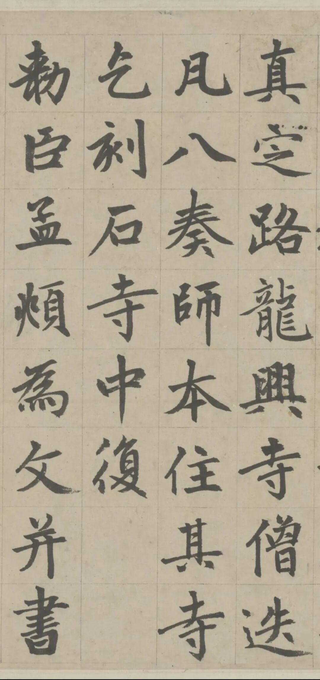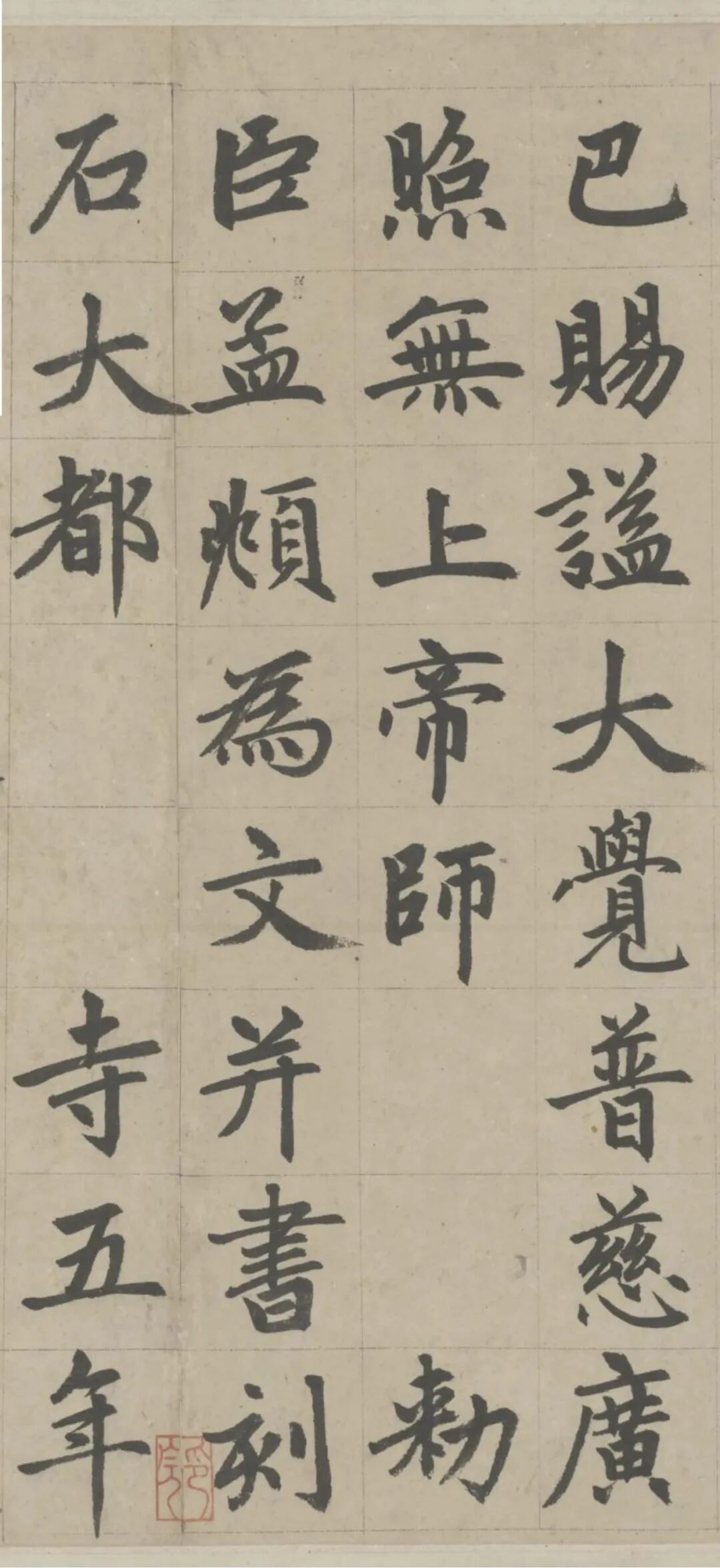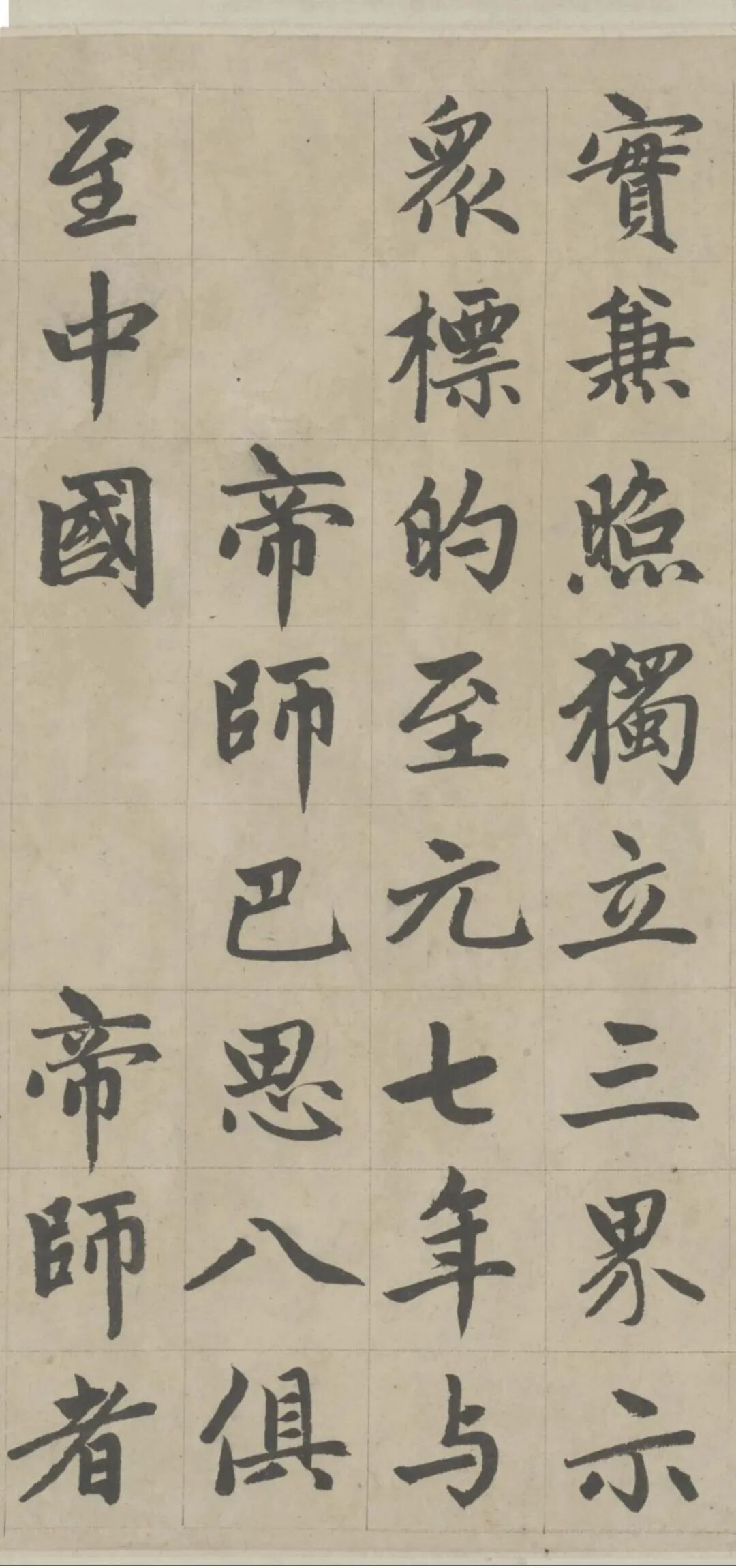 《胆巴帝师碑》,全称《大元敕赐龙兴寺大觉普慈广照无上帝师之碑》,简称《胆巴碑》,书于元延祐三年(1316年),乃赵孟頫六十三岁晚年奉敕而作。此作系纸本墨迹楷书,纵33.6厘米,横563厘米,全文一百二十五行,共计九百二十三字,通篇以乌丝栏界格,现收藏于北京故宫博物院。