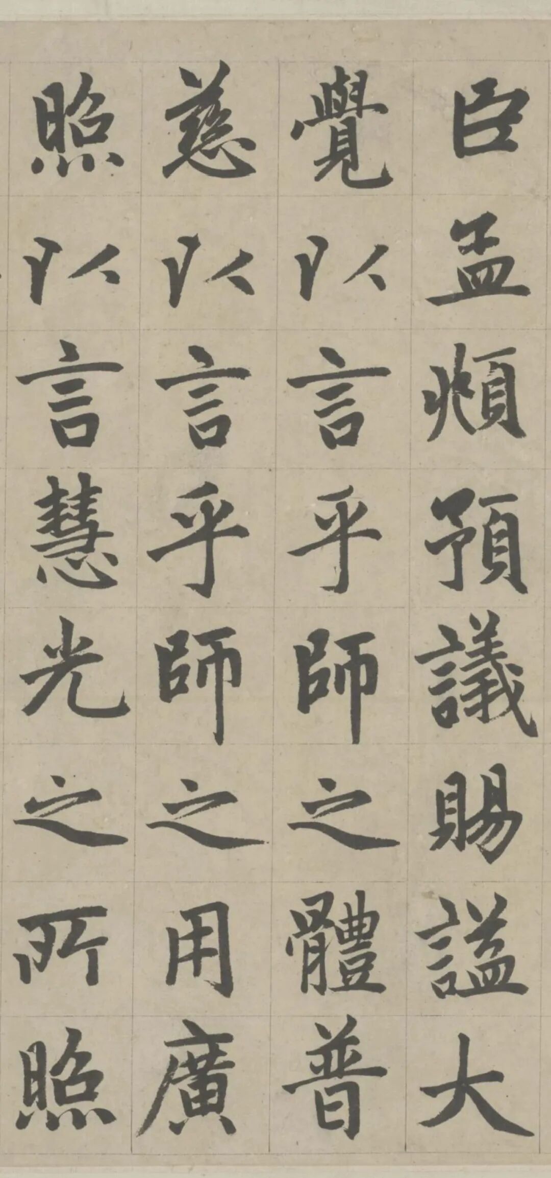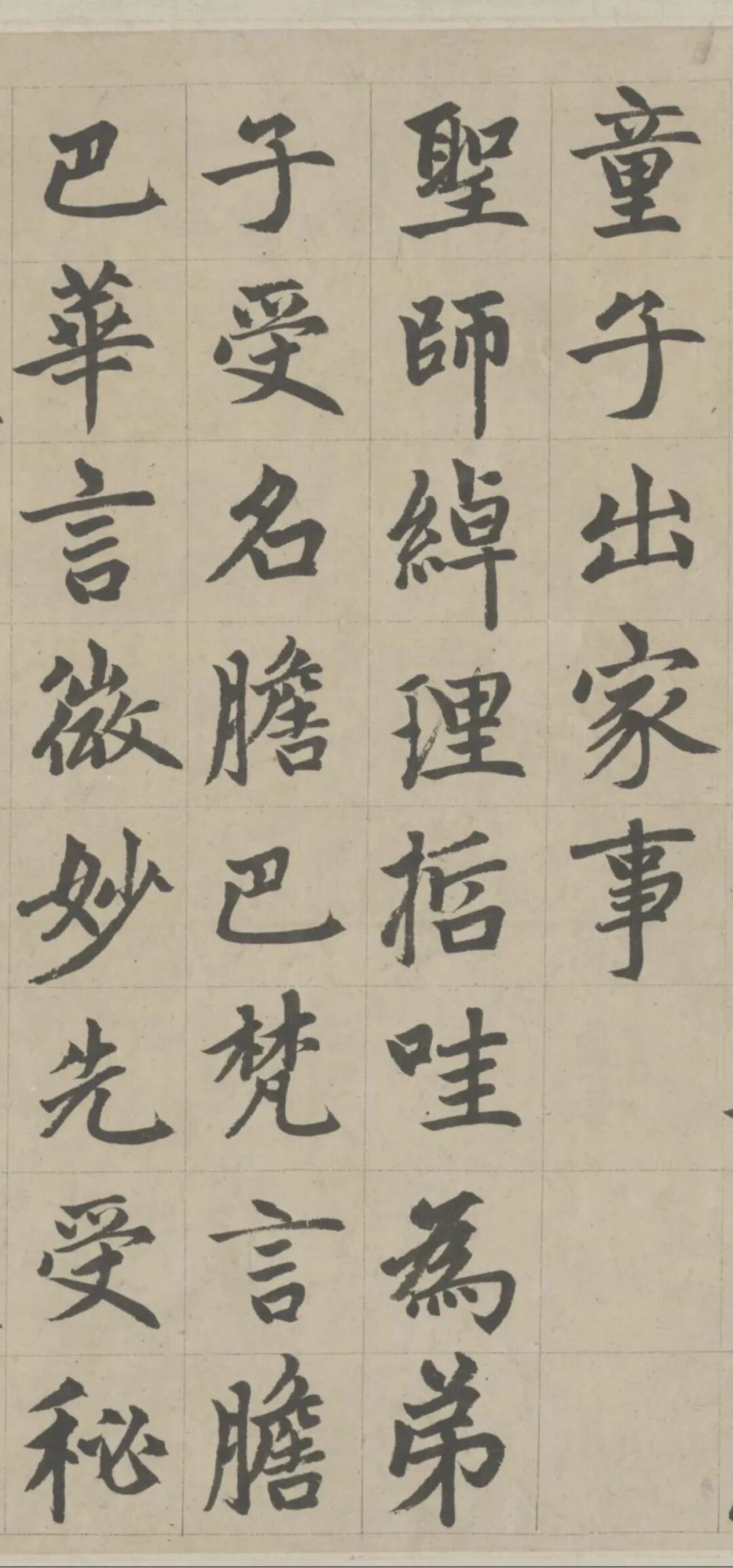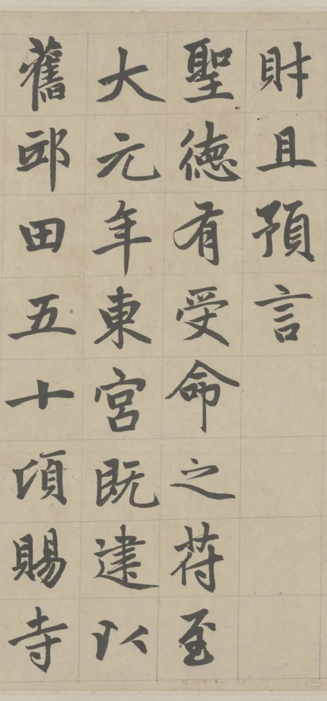 《胆巴帝师碑》,全称《大元敕赐龙兴寺大觉普慈广照无上帝师之碑》,简称《胆巴碑》,书于元延祐三年(1316年),乃赵孟頫六十三岁晚年奉敕而作。此作系纸本墨迹楷书,纵33.6厘米,横563厘米,全文一百二十五行,共计九百二十三字,通篇以乌丝栏界格,现收藏于北京故宫博物院。