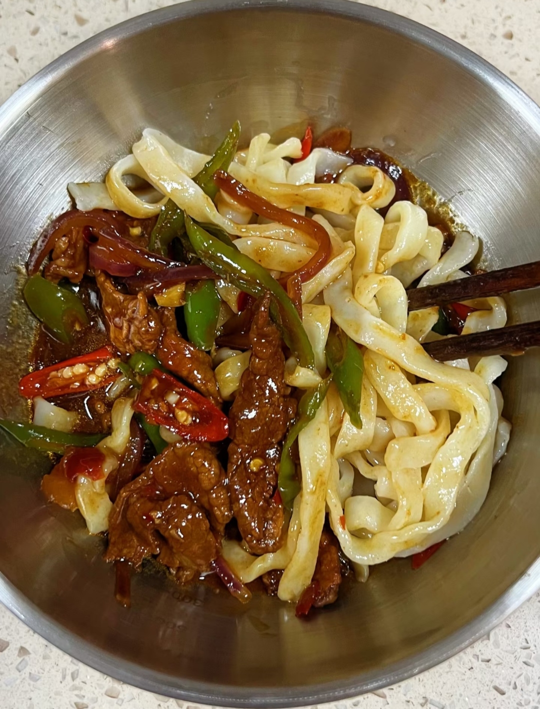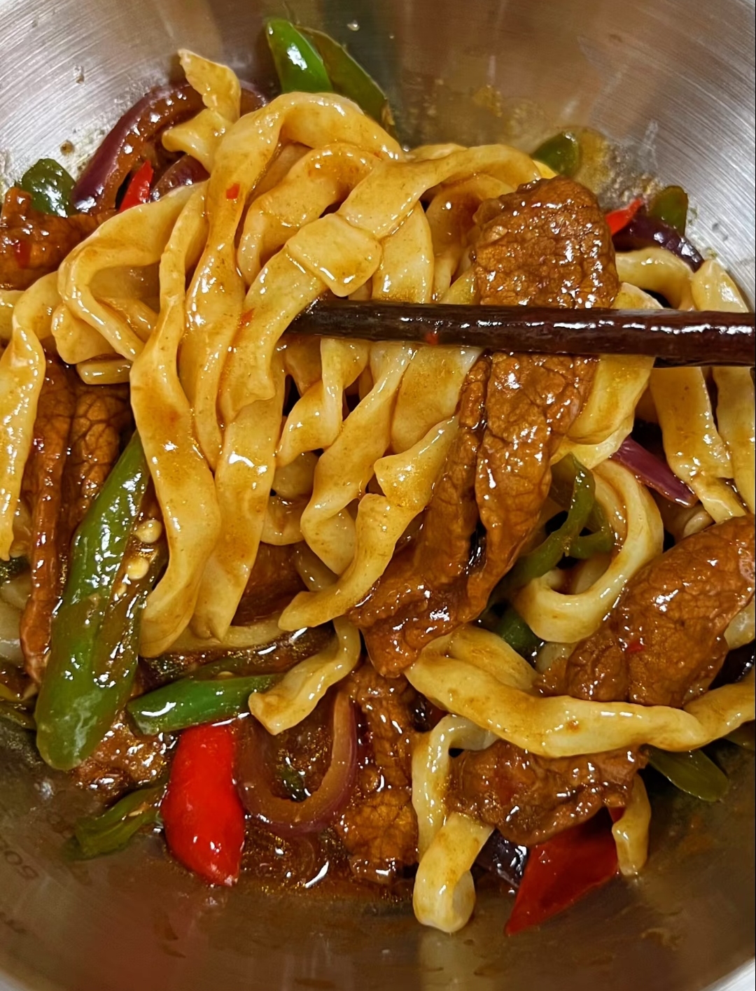 Step 4 合体式:把先调好的酱汁倒进去,汤汁一冒泡就浓稠,像“火山岩浆”,此时牛肉回锅,翻两下,让酱汁抱住肉片,关火!全程不超过 90 秒,牛肉嫩到弹吉他。