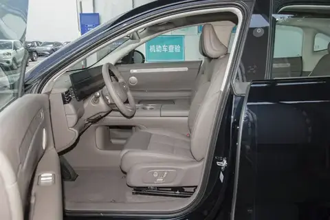 车身侧面采用流体雕塑设计语言,溜背式车顶线条与车身型面自然衔接,不仅优化了空气动力学性能(有助于提升续航表现),更赋予整车优雅动感的姿态。隐藏式门把手采用触控感应式设计,弹出时流畅无阻,归位后与车身曲面巧妙融合,兼顾了0.28Cd超低风阻系数与美学追求。20英寸双色旋风轮毂搭配235/50 R20低滚阻轮胎,在提升运动气质的同时有效降低能耗。色彩体系提供拉斐尔茶(暖棕金属漆)、雅典娜白(珍珠云母漆)、尼维斯蓝(冰川蓝金属漆)等7种个性方案,通过不同色相与材质工艺的组合,满足都市精英群体对个性化表达的多元需求。