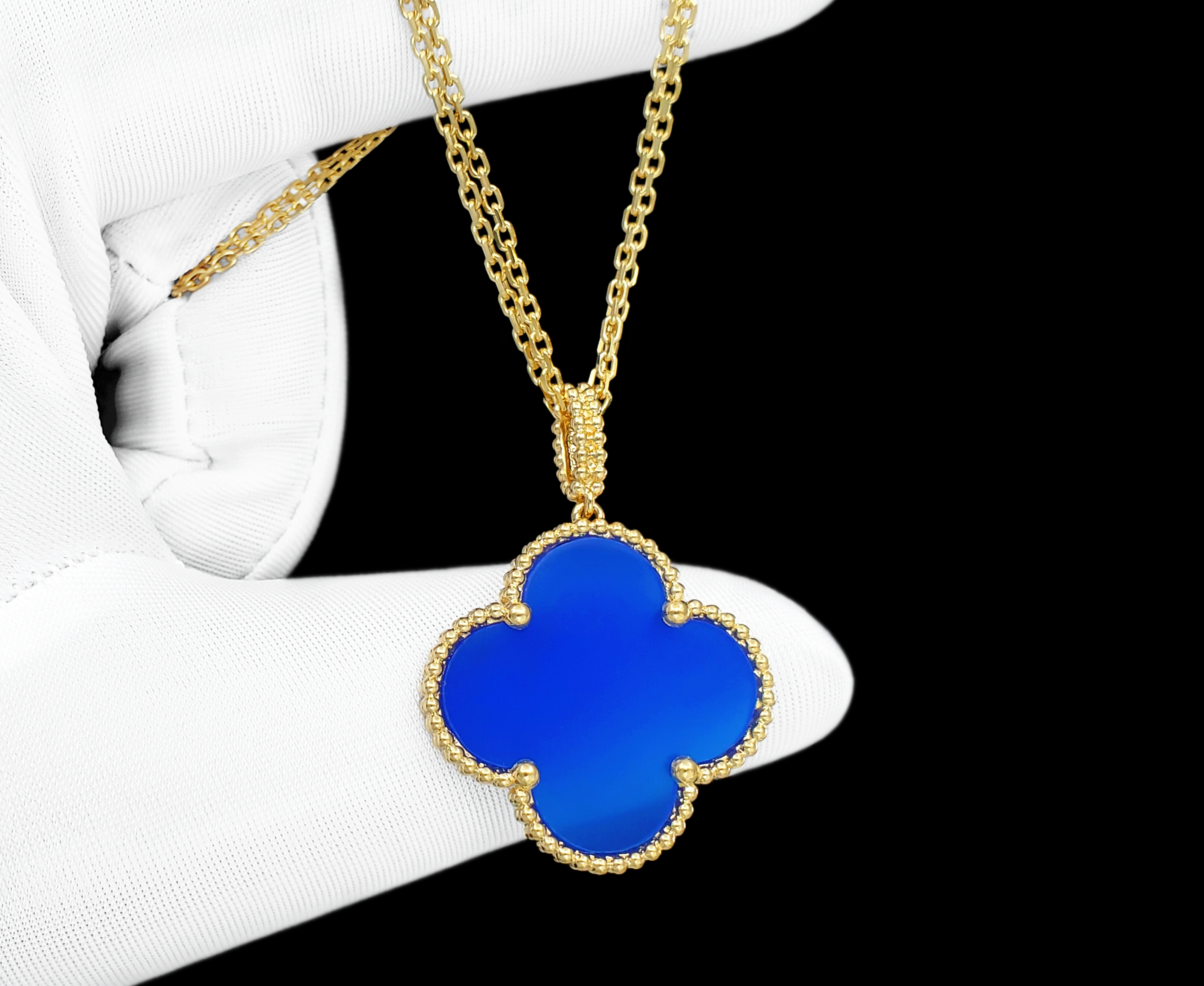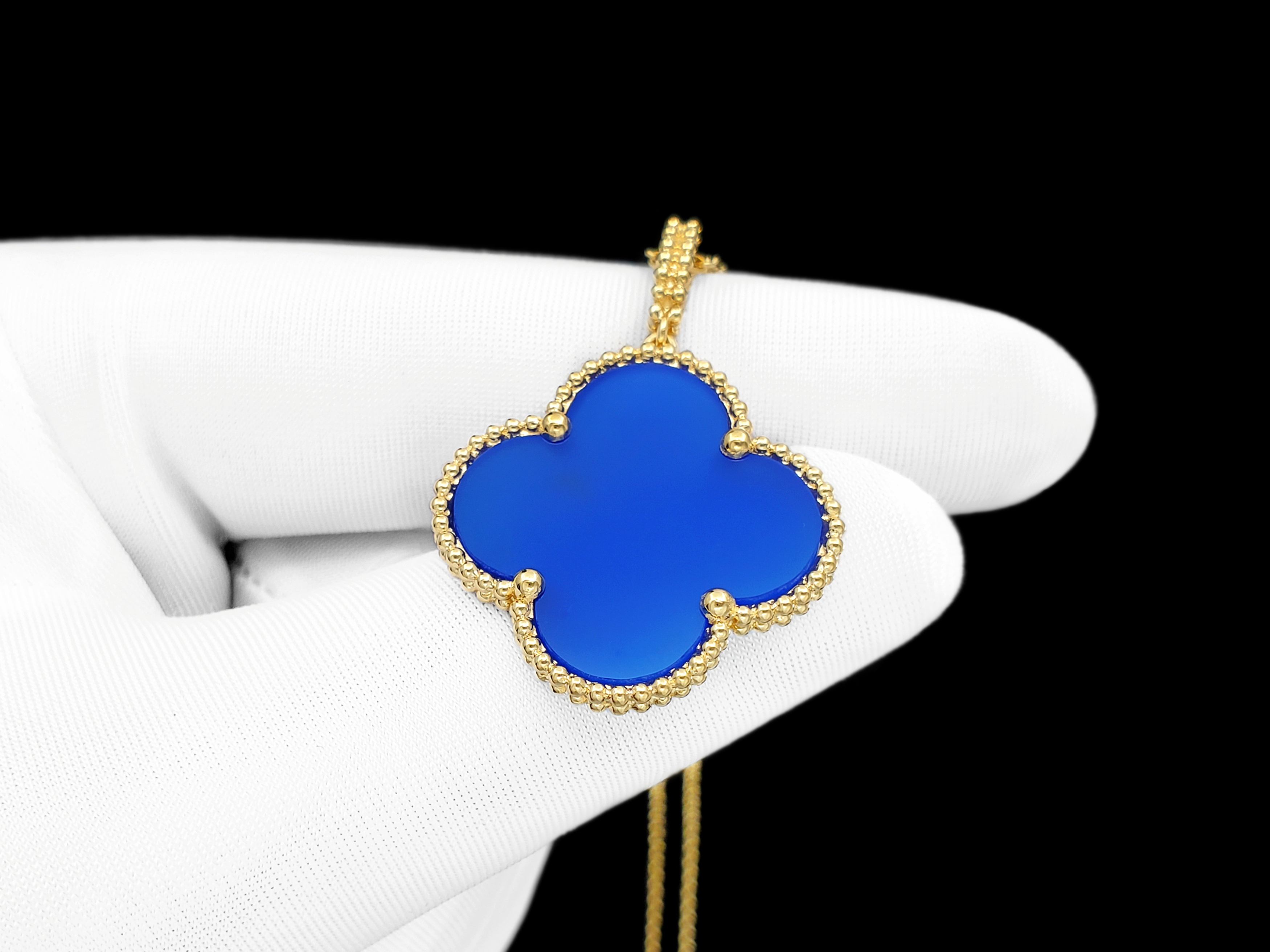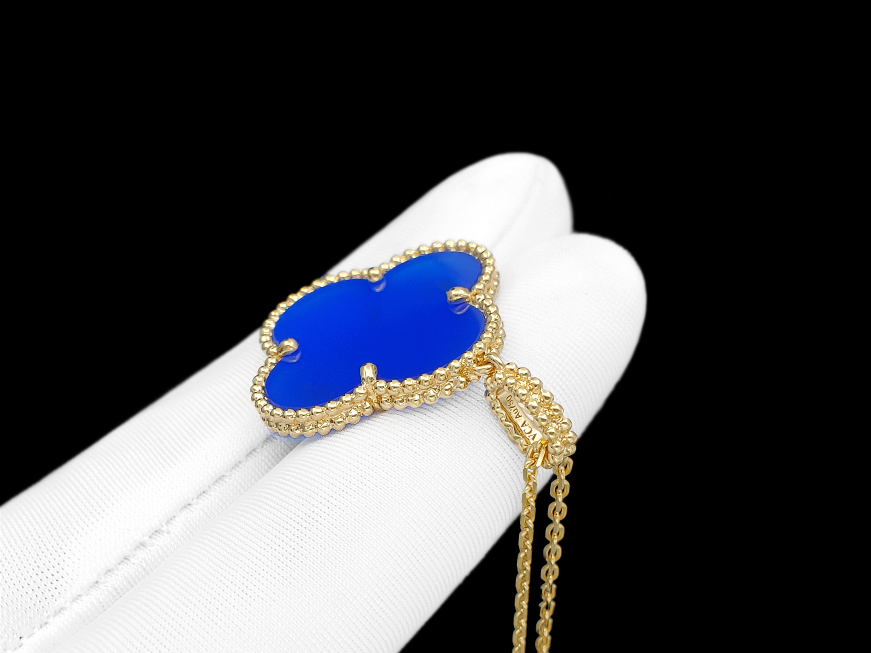 VCA梵克雅宝Magic Alhambra系列18K黄金蓝色玛瑙大号四叶草毛衣项链