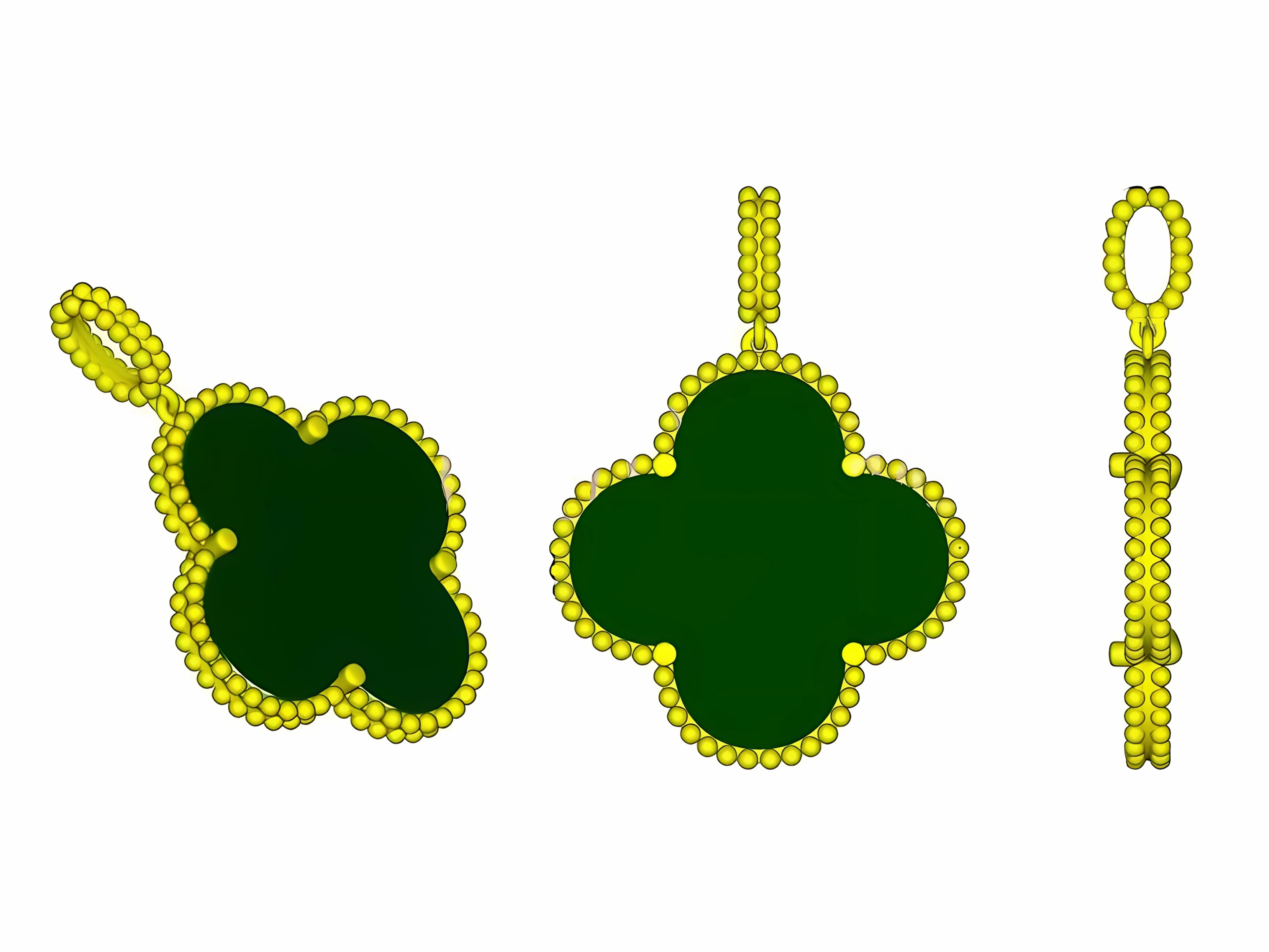VCA梵克雅宝Magic Alhambra系列18K黄金蓝色玛瑙大号四叶草毛衣项链CAD图
