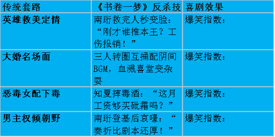 当别的剧还在玩“落水必接吻”时,《书卷一梦》让女主被花盆砸死;当同行热衷“城墙二选一”虐恋时,它安排男主跳楼证道——观众眼泪刚到眼眶,编剧反手塞进一嘴爆米花!这部用唢呐版《囍》当BGM的癫剧,表面是穿书喜剧,实则是古偶套路爆破大队。