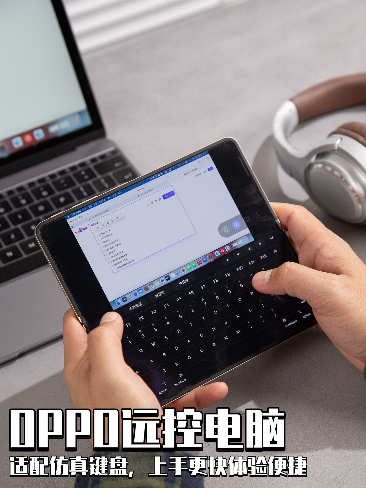 如果你的电脑还是Mac,那还能解锁OPPO Find N6全新形态:移动工作站。OPPO远控电脑→连接完成后,即便出门在外也能远程遥控家里\公司的Mac电脑,工作小事轻松搞定,为了让你更快上手,OPPO Find N6甚至还贴心适配“仿真键盘”,超赞!就问你有没有被OPPO Find N6的超绝无缝互联体验种草到?
