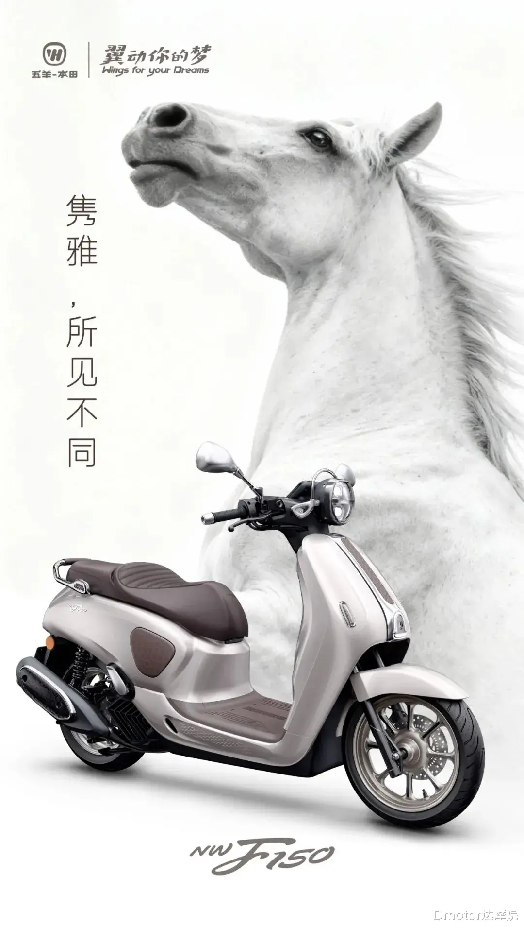 动力部分,NWF150搭载的是五羊本田自家的eW15水冷发动机,最大功率11.4kW(约15.5匹马力),在150cc级别中属于成熟、稳定取向。