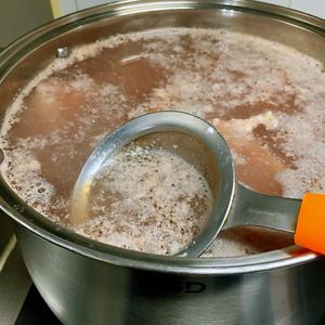 大火烧开。快要开锅时,开始有血沫浮起,用漏网撇干净。