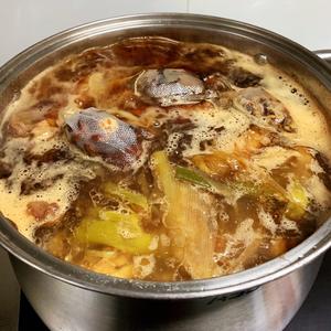 这时候可以用勺子撇去浮在上面的油脂,即可。