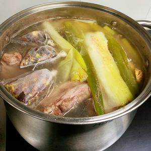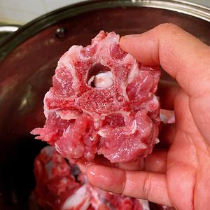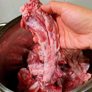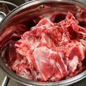 羊蝎子一根( 买的时候请买肉的伙计切好合适大小的块),洗净放入锅中。