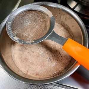 边撇边翻动锅里的羊蝎子,让血沫尽量快速浮出。看,撇出不少哦。