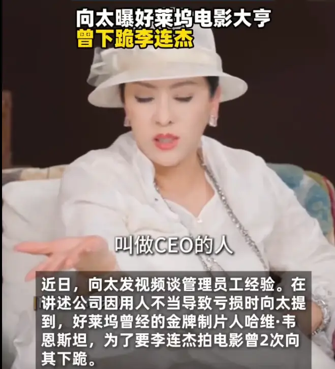 先给大伙们快速划重点,避免被网传谣言带偏:近日,向太陈岚在个人社交平台更新管理心得视频,聊到“老板要学会为员工善后”时,无意间爆出一段尘封的好莱坞秘辛——她说的这位好莱坞制片人,正是当年号称“冲奖教父”的哈维·韦恩斯坦,当年为了求李连杰出演自己的大制作电影,竟然两次向李连杰下跪,姿态卑微到不敢想象。