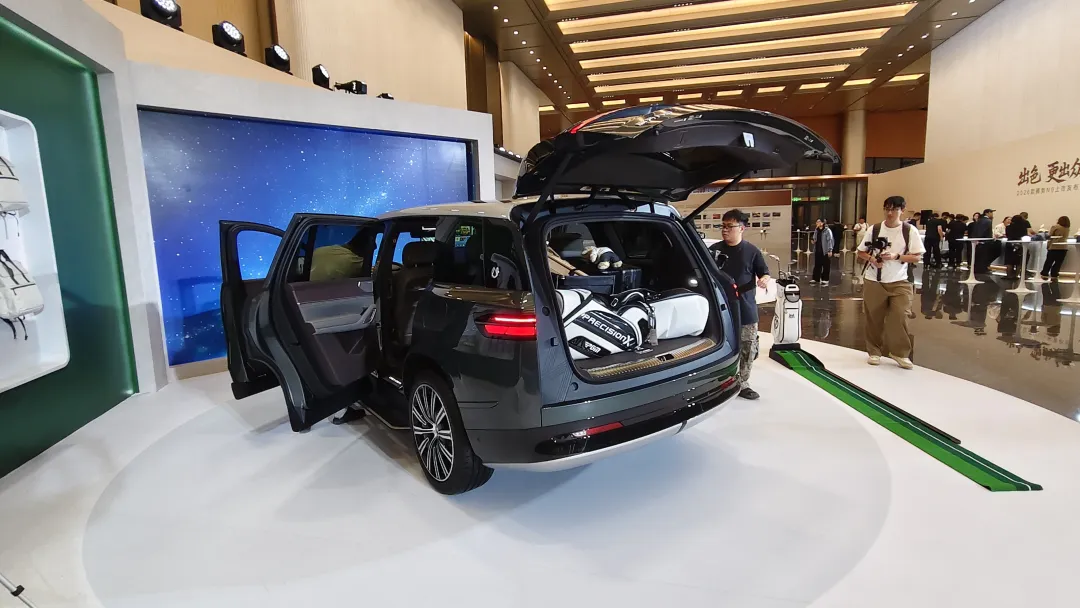 要空间灵活性选腾势 N9:三排都有超 1 米腿部空间,座椅能拼出 1.8 米大床,后备箱能放 47 英寸高尔夫球包。