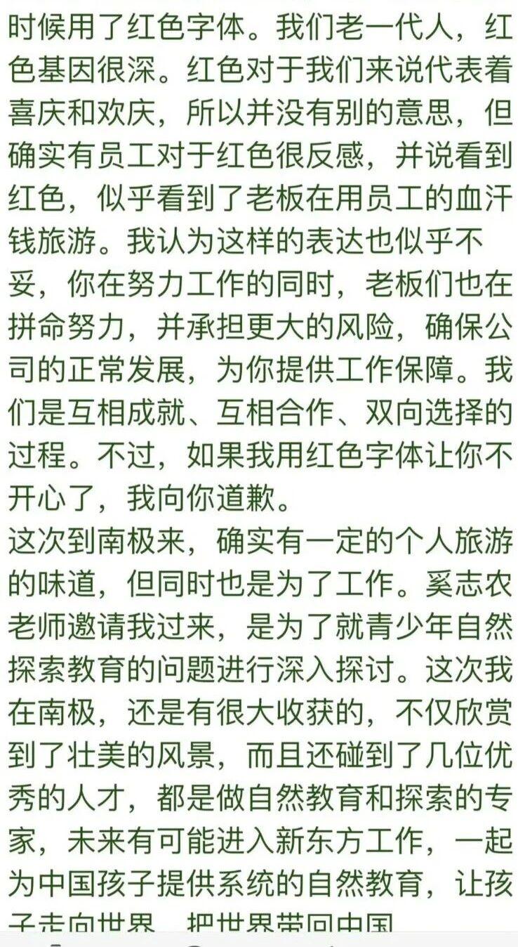 说实话,很多人并不是新东方的员工,跟他半毛钱关系都没有,换做自己去南极旅游不得显摆显摆。看到老俞分享的照片我心里其实也挺羡慕的:羡慕他有这样的能力、身体、资本,还有勇气和心态,那是人生的一个理想状态吧,所以羡慕。