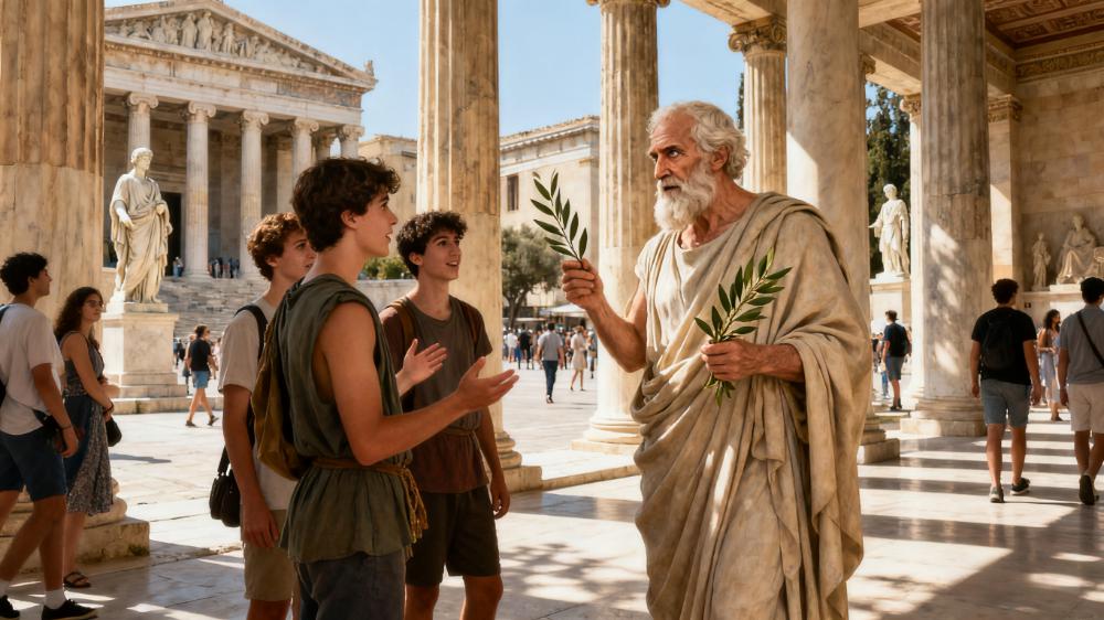 在雅典街头上课:苏格拉底的教学没有固定场所,广场、街边、体育馆,都是他的课堂。
