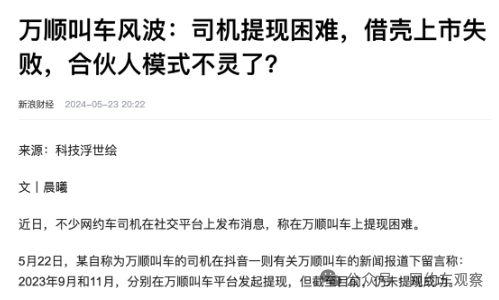 资本失去信心,万顺叫车收购计划泡汤,司机提现路在何方?