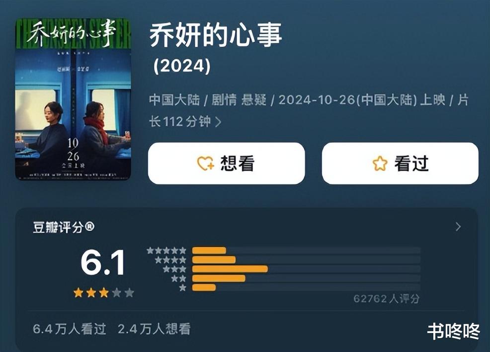 电影《乔妍的心事》票房扑街,口碑也不尽如人意。