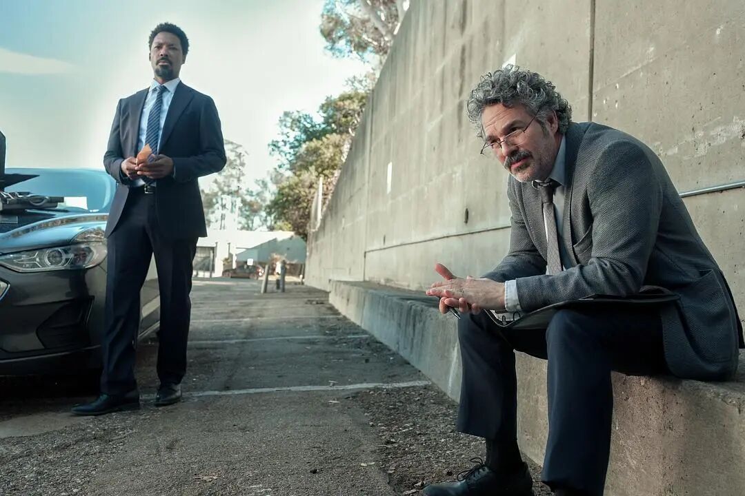 马克·鲁法洛则彻底收起了绿巨人的狂暴。他饰演的警探卢,驼着背,眼神涣散,婚姻失败到只能抱着猫咪,搬进一间海边公寓。他看起来就像随时会被体制优化的“老油条”,却偏偏是那个能从一堆冰冷的结案报告里,嗅出真相端倪的“偏执狂”。