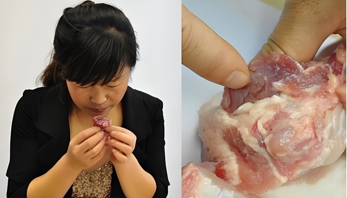 咱们光说了看猪肉颜色,闻猪肉味道,其实也可以通过摸一摸猪肉的质感来判断猪肉是不是新鲜。新鲜的猪肉触碰上去非常有弹性,而且你能明显的感觉到猪肉的肉质很紧致,戳一下立马回弹,摸起来也不粘稠。