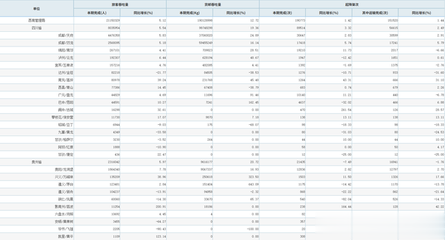 13、宜宾五粮液机场157216人次,增长4.76%。