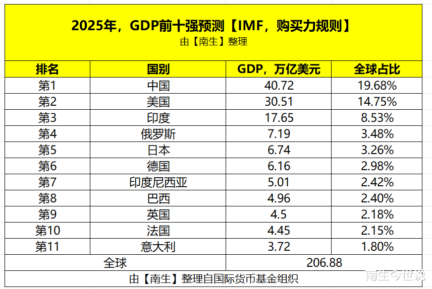 这一系列反应迅速、精准有力的反制措施背后,是中国日益强大的综合国力支撑。根据IMF按购买力平价规则的预测,中国2025年GDP将达到惊人的40.72万亿美元,占全球19.68%,超过美国的30.51万亿美元和14.75%的全球占比。