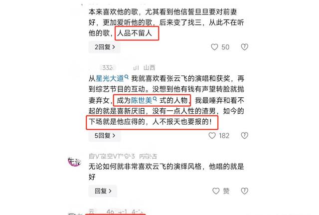 “陈世美”、“负心汉”掩盖了云飞身上所有的光环。