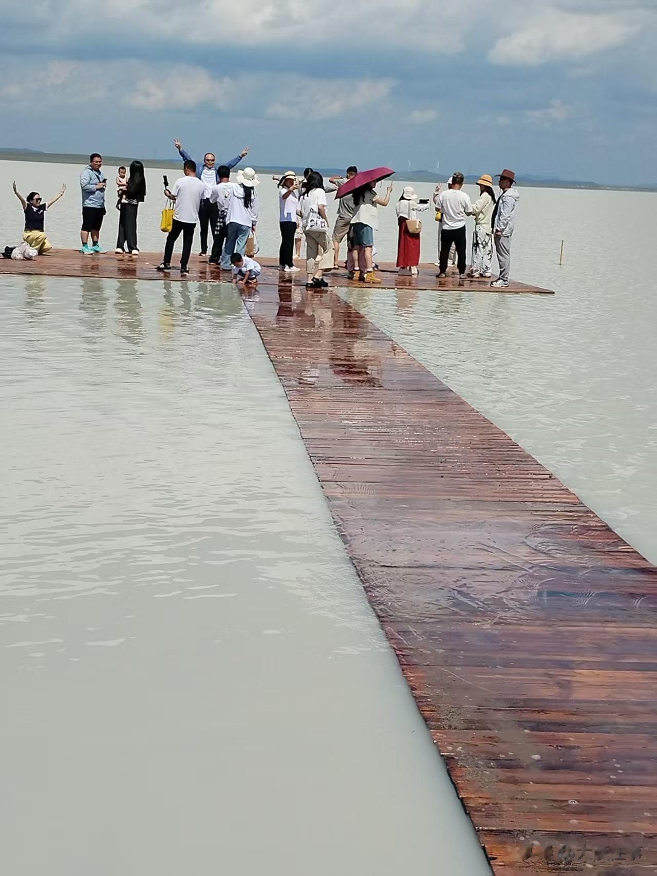 在湖边,相隔一定的距离,就会有一条长长的甲字型浮水木栈道,供游客们走进湖面深处,去探秘,去体会,去亲近。。。