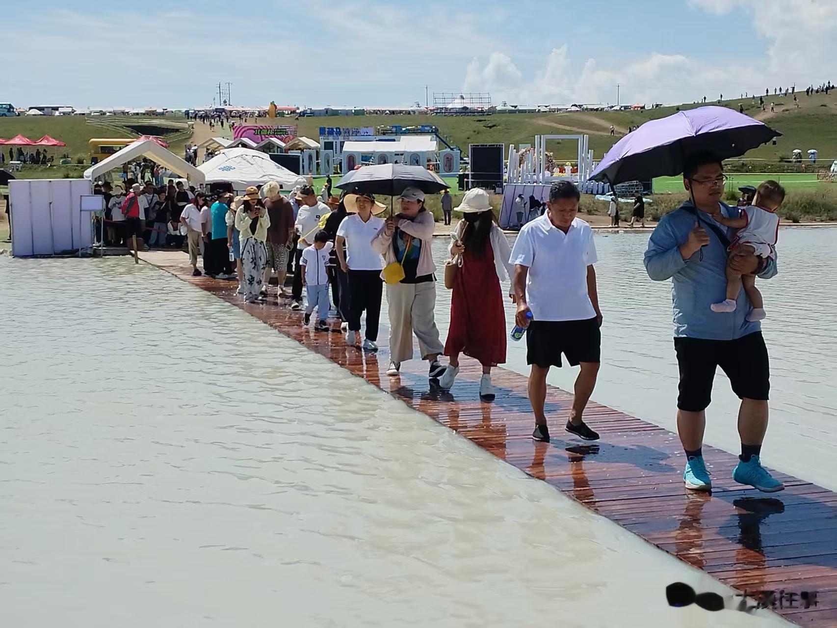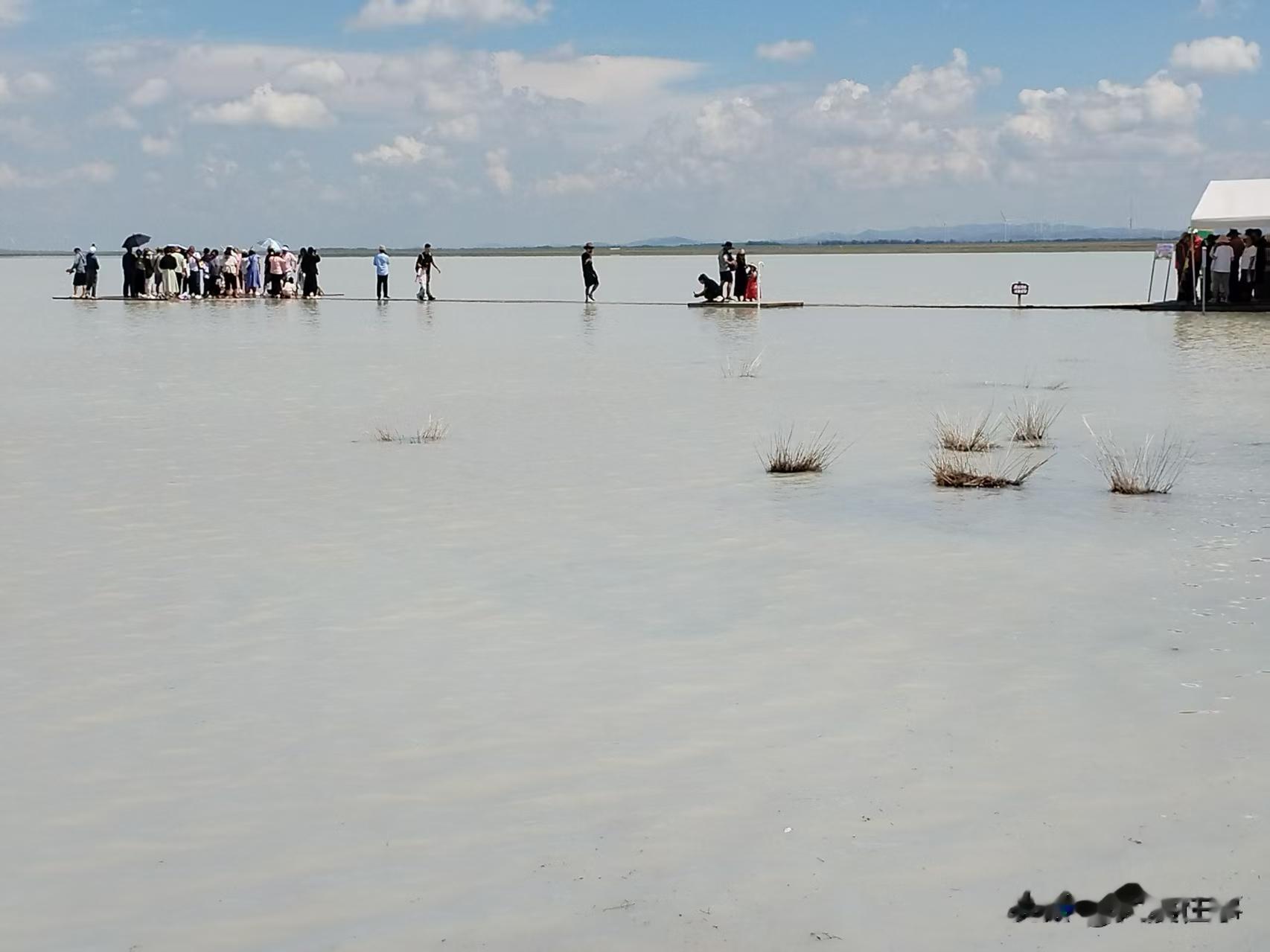 大家纷纷走上去,栈道微微地上下波动,水上行的感觉,慢慢地,一边走,一边观景,水湿了鞋子,也顾不了啦。