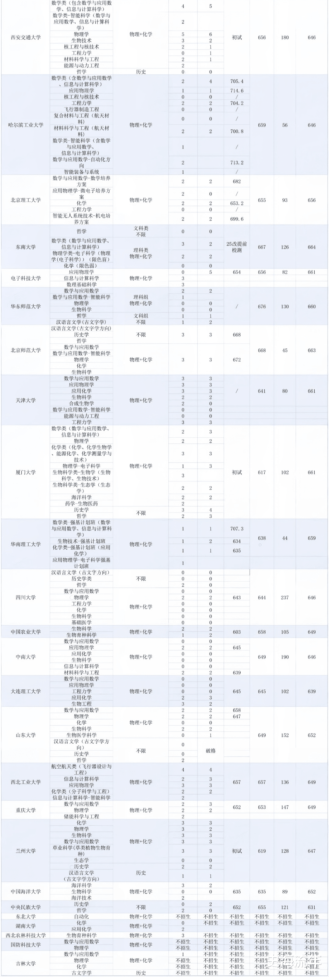 部分院校存在“捡漏”空间。比如如兰州大学、中国海洋大学等校入围线相对较低,适合成绩中上游且愿意深耕基础学科的考生。