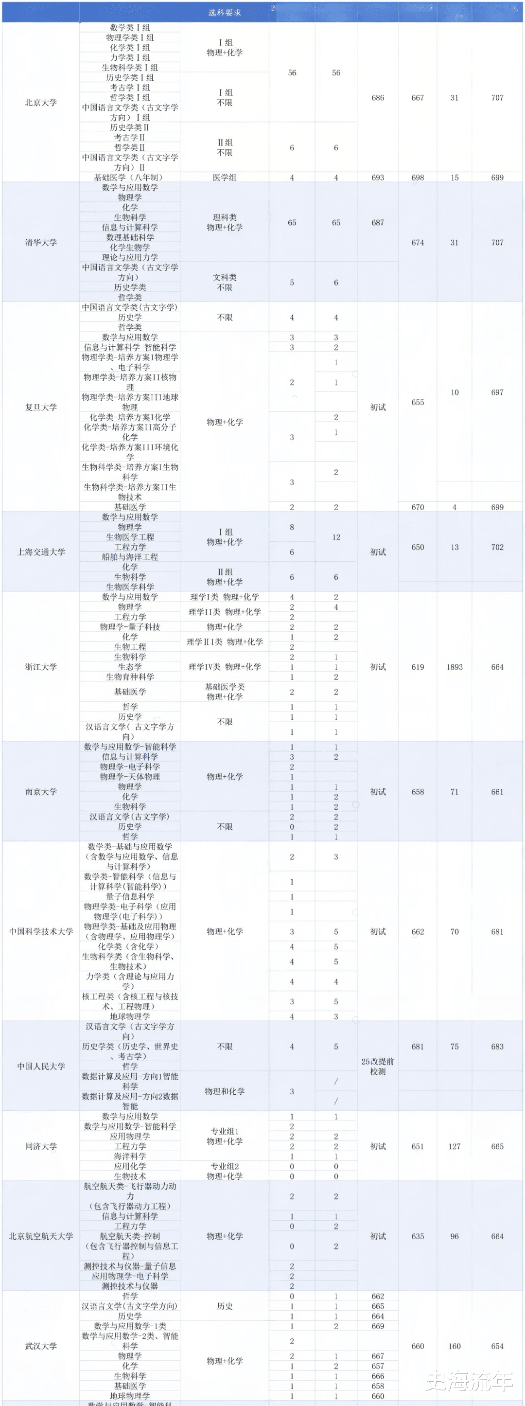 第三,新增与调整院校。吉林大学、湖南大学、西北农林科技大学三所高校,2025年首次在浙投放强基计划名额,东北大学、国防科技大学则未继续招生,招生高校总数稳定在37所。比其他省市的招生院校,都相对要多一些。这也进一步证实浙江省优质生源的吸引力。