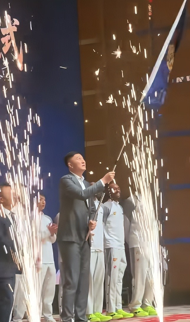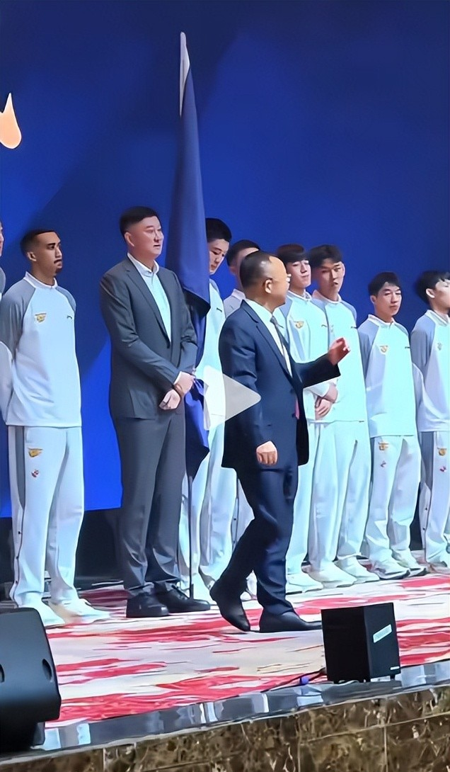 值得注意的是,在出征仪式上,有一个授旗仪式,投资人把宏远队旗授给主教练杜锋,杜锋指导拿到旗后挥舞一番,然后就返回队列,把队旗交给了王洪泽。正常情况应该是队旗已经交给队长胡明轩的,情商超高的杜锋为何有这番操作,或许故意为之。