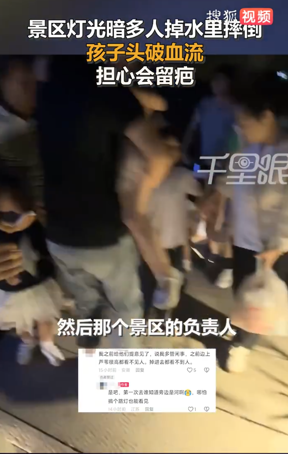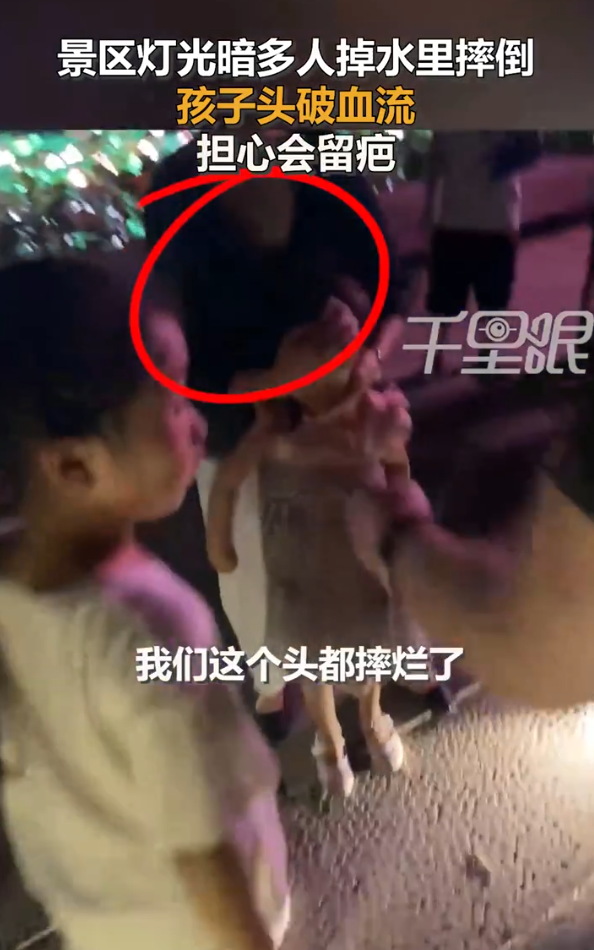 11月1日,安徽合肥。李女士带着小孩到磨滩景区游玩,晚上因为灯光昏暗,孩子摔倒头破血流,身上多处擦伤。联系景区期间又有两名游客摔倒掉进水里,景区负责人刚到,也同样摔在水里。就医后,李女士表示孩子会留疤,希望和景区协商后续祛疤治疗,景区工作人员表示只能实报实销,不认可就建议起诉。
