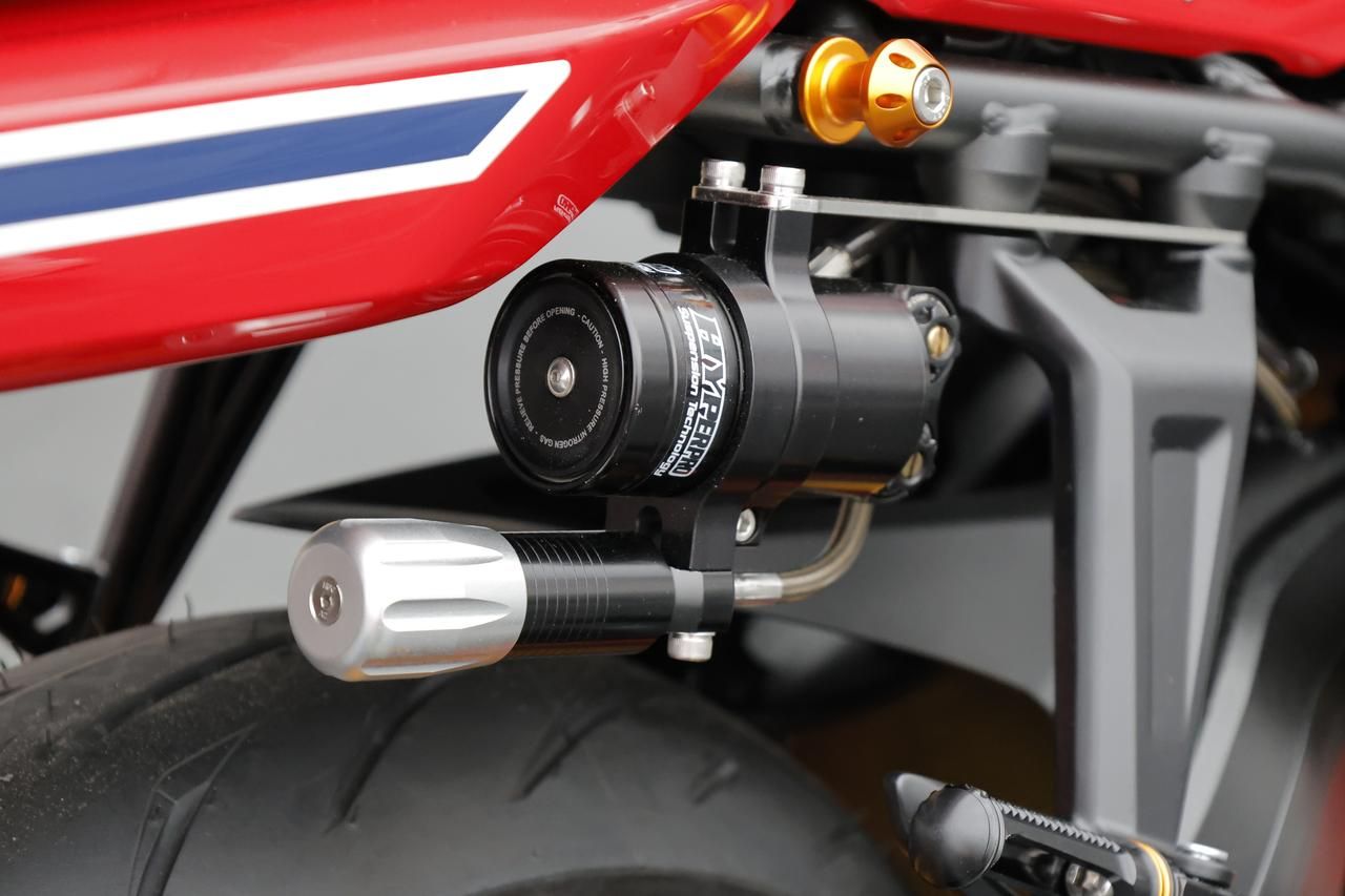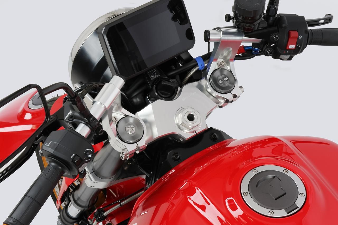 在经典色彩之下,ACTIVE动了个大手术:将原本的一体式把手改成了分离式把手(Clip-On Handle)。 这一下,CB1000F的整体剪影立刻「エフ」味爆棚! 因为过去的CB750F也是采用分离式把手设计,这种向经典致敬的改动,让车头线条更低趴、更有侵略性。
