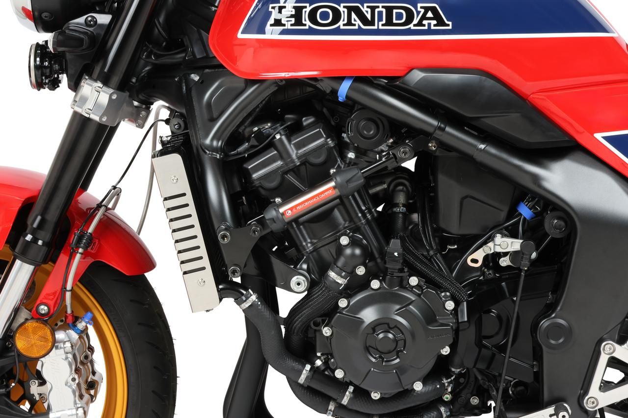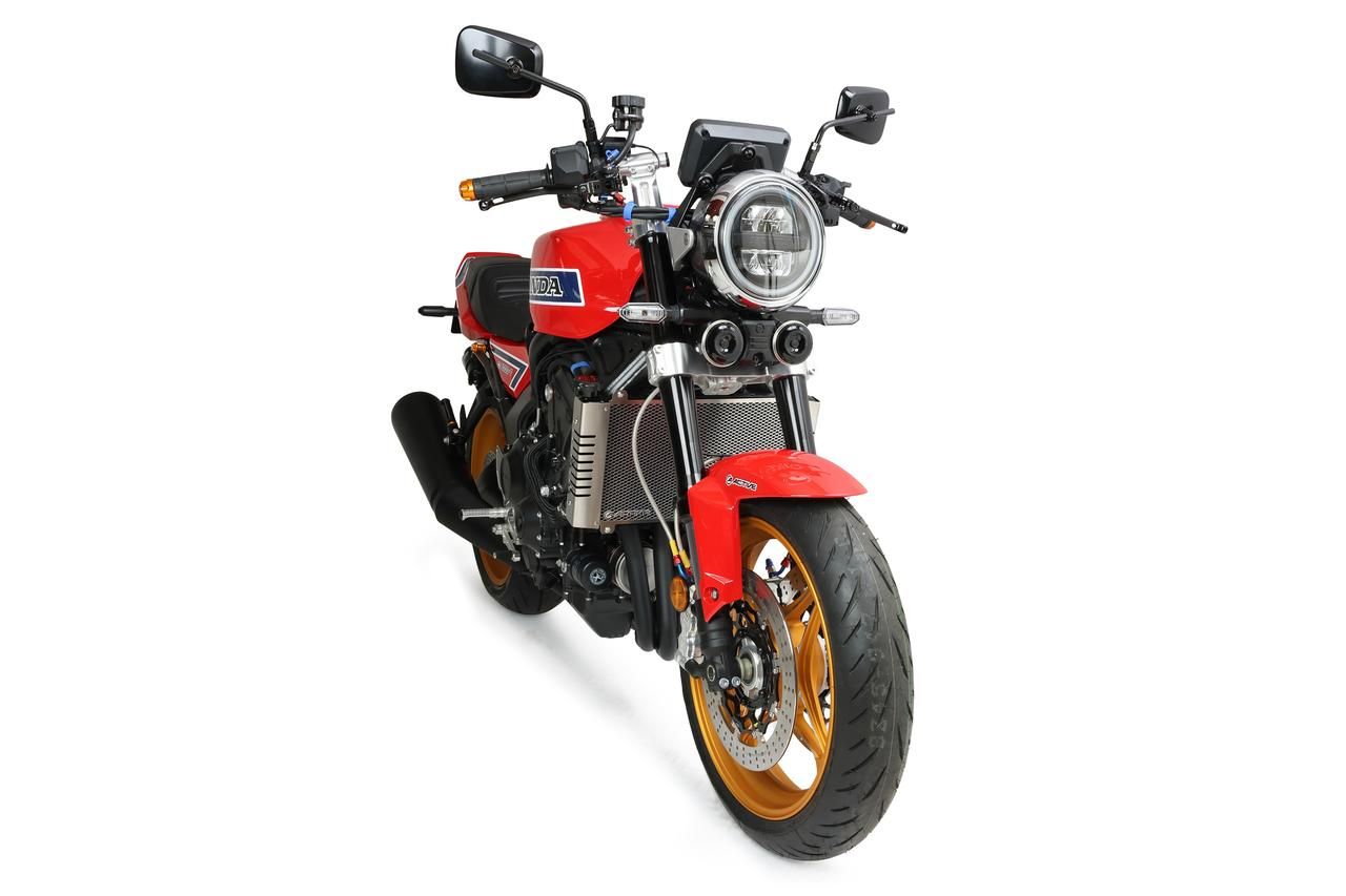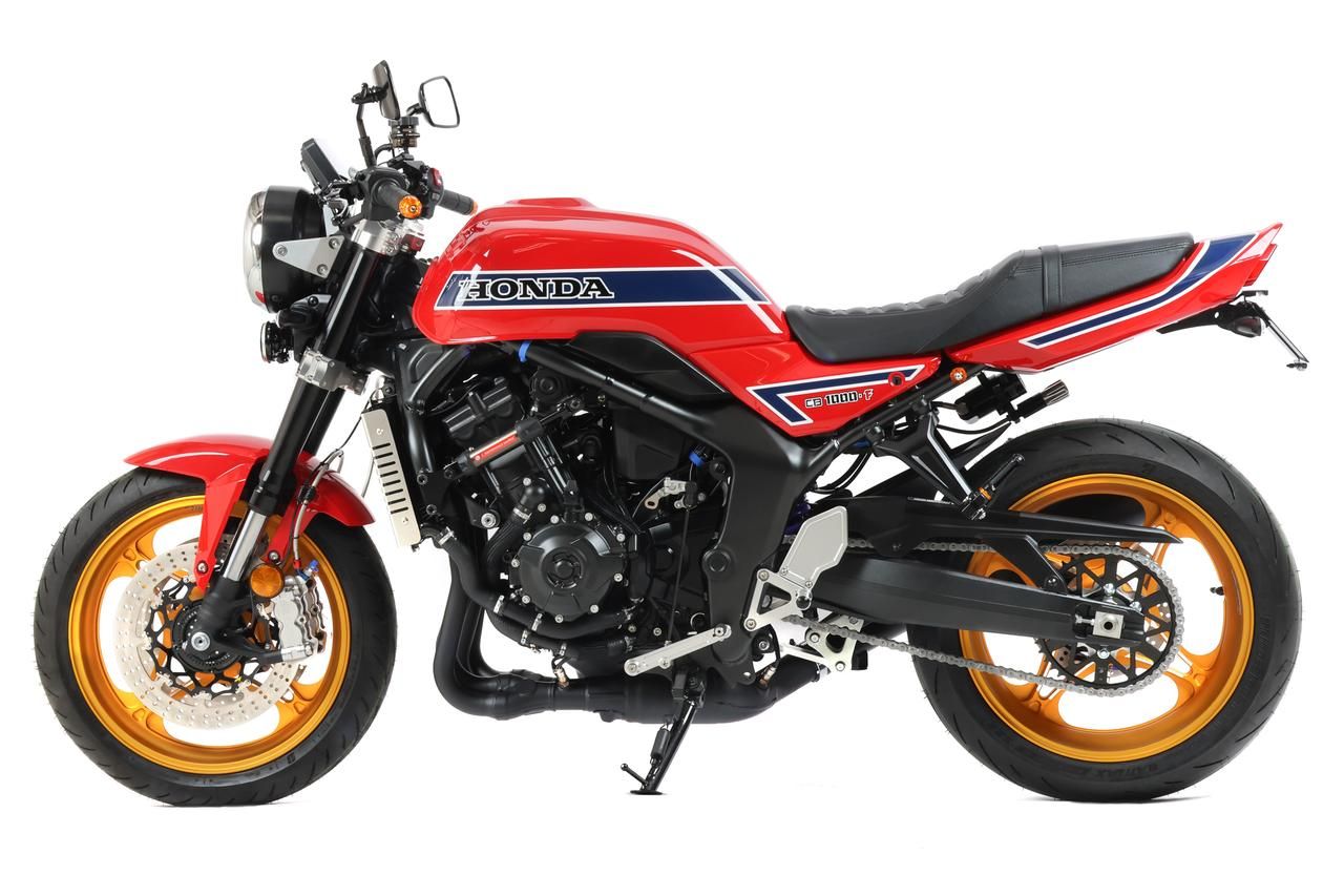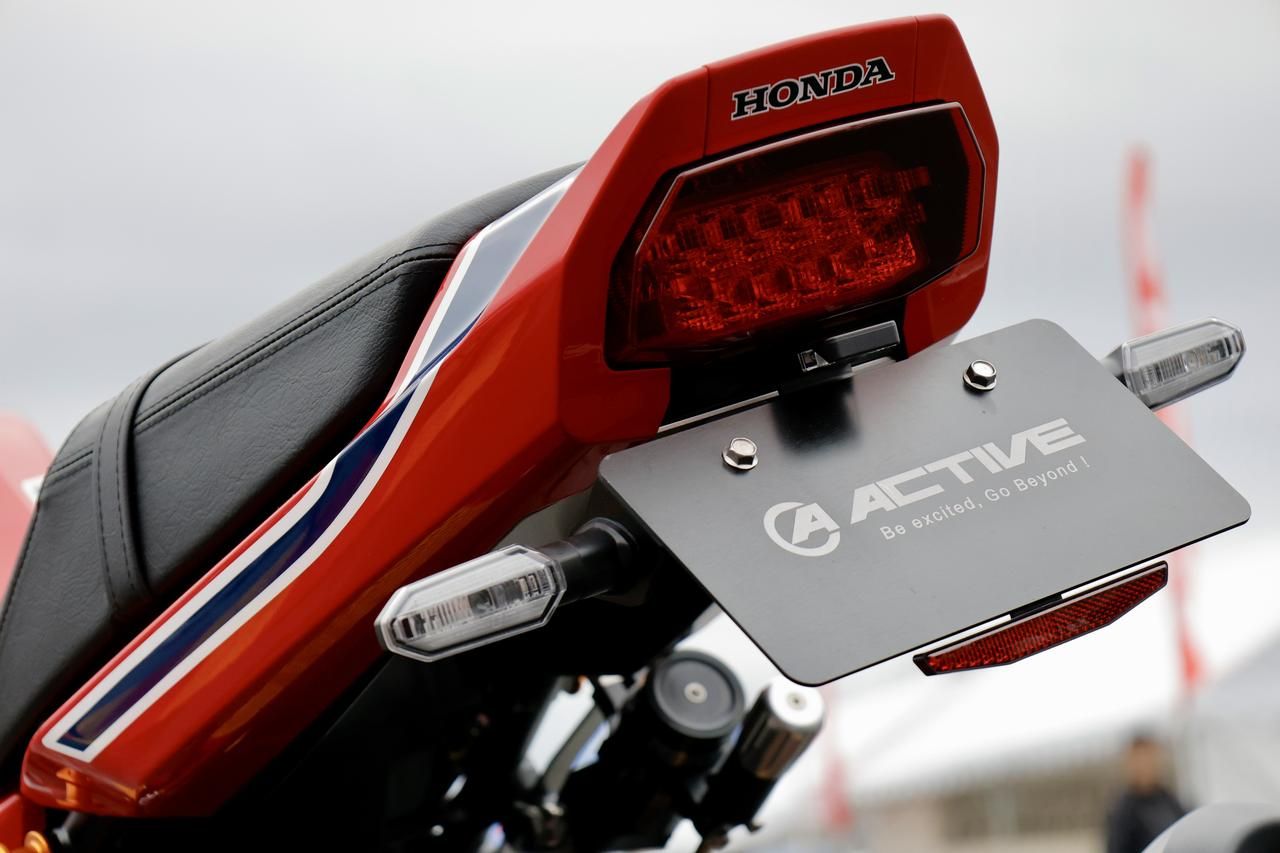 ACTIVE改装套件重点经典复刻涂装:车身采用鲜艳的红色配蓝色条纹,致敬1979年CB900F(日本CB750FZ)的经典「BOL D'OR」配色。
