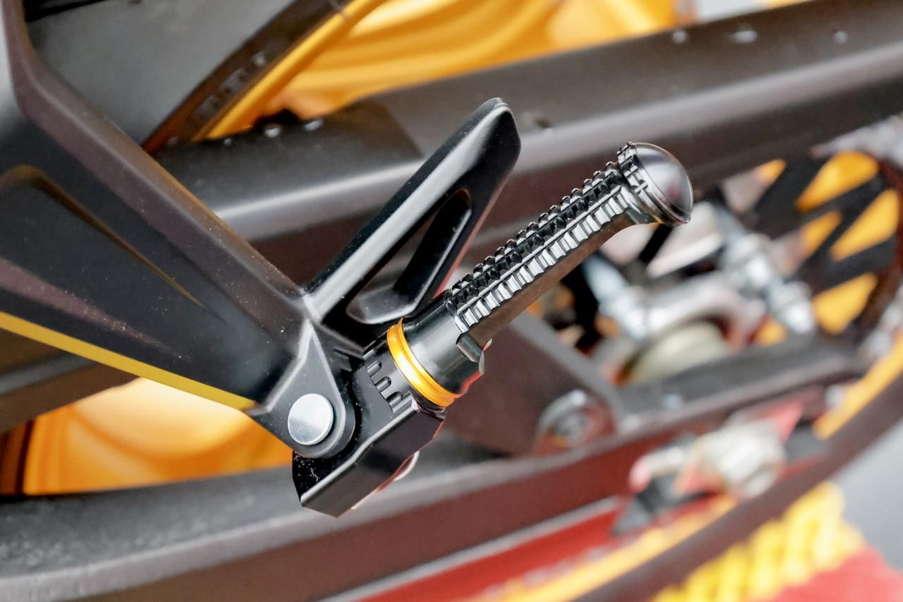 脚踏部分也换上了铝合金切削制成的脚踏后移套件,预计在2026年3月上市,价格5万5000日元,同样有银色和黑色可选。 它采用简洁的2D切削设计,换档连杆和刹车油管都能沿用原厂规格,安装便利性满分。