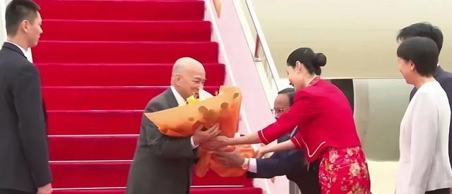 西哈莫尼国王这次来三亚,专门铺红毯迎接,有中国驻柬埔寨大使,也有柬埔寨驻华大使,礼仪礼节都很到位。