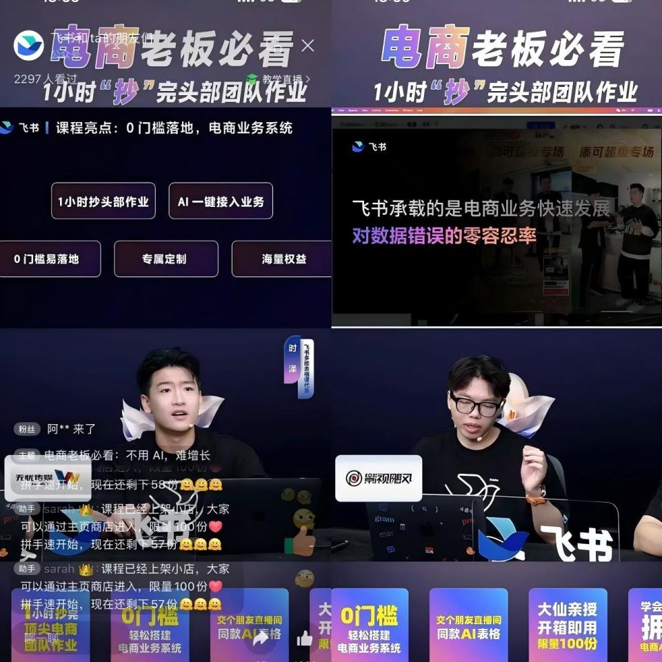 在推广上,飞书和钉钉都推出了独立版应用,同时,飞书多维表格也在直播间售卖「百元电商行业模版」,从熟悉的行业开始,直接卖轻量化的模版解决方案。