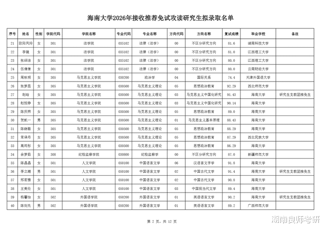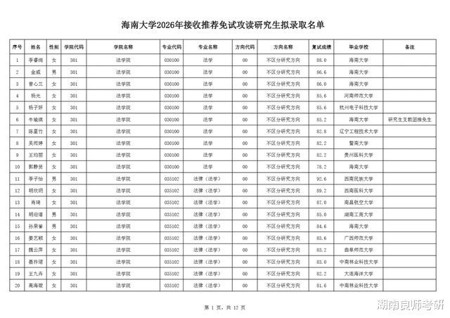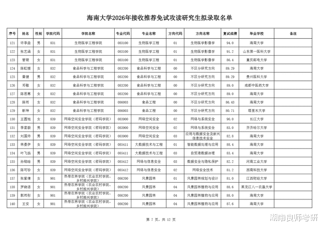 海南大学推免生录取人数约占硕士总招生计划的15%-25%(部分特色学科可达30%),2026考研推免拟录取237人!海大