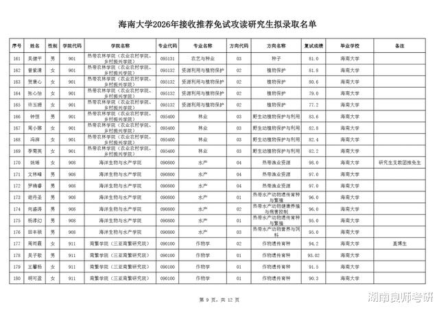 生源院校:华南农业大学、云南农业大学、海南师范大学等农林类或地方院校。