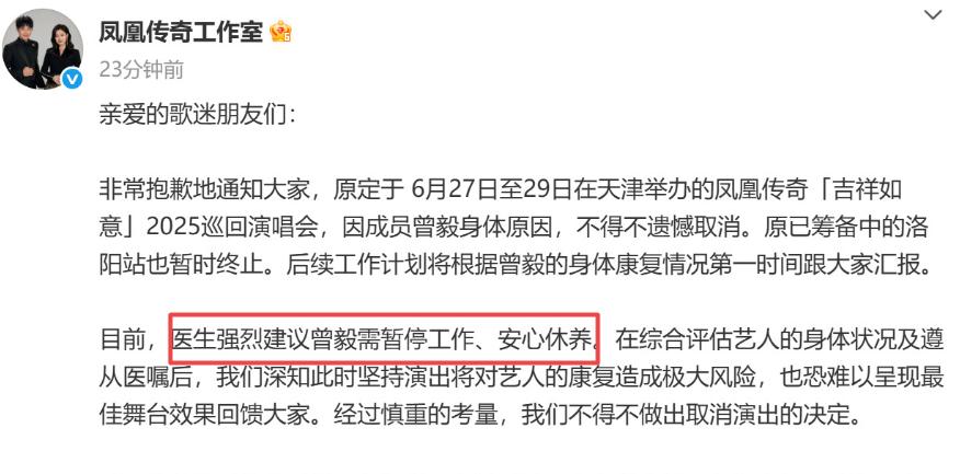 说起来自从搭档曾毅戴“不雅手表”事件后,很快关于凤凰传奇的演出就取消,对此,虽说工作室发文称是因为曾毅身体原因不得不暂停工作、安心休养,但不少网友认为是受手表事件的影响。